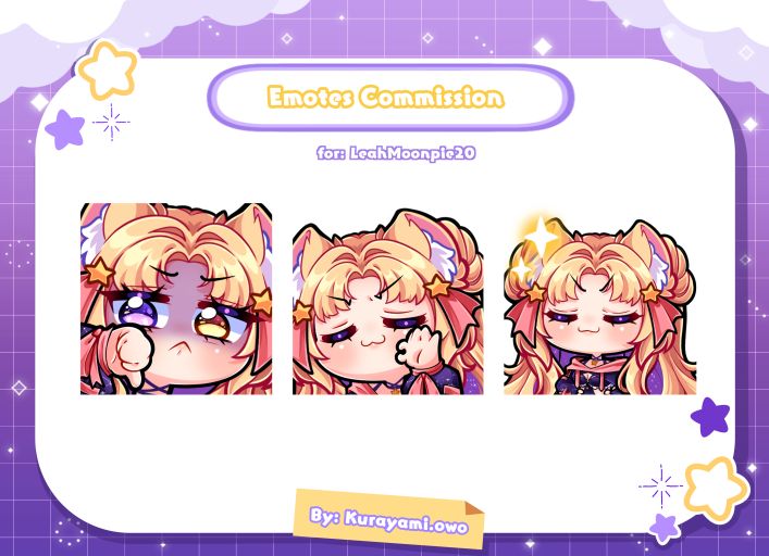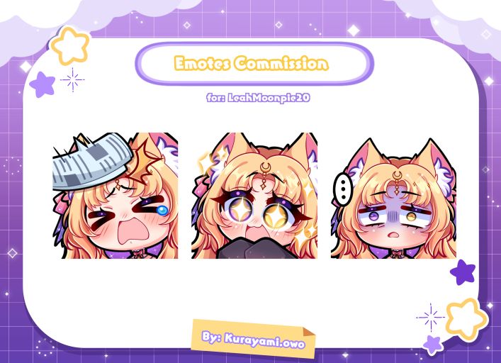 PRICE ▪︎19$ USD each emote the character is very detailed, a little more will be charged depending on the amount of detail it has. + 10 USD per emote for separating For better communication you can also write me through my discord kurayami3270 ................To know my rules please enter my card, when bidding I will understand that you read and agree with my rules ♥*♡(~‾▿‾)~♥ . ............................. https://kurayami.uwu.ai/