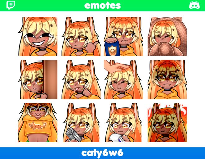 ‣ 3 emotes - 10$ ‣ 6 emotes - 15$ ‣ 9 emotes - 20$ ‣ 12 emotes - 25$ ‣ 15 emotes - 30$ ‣ 18 emotes - 35$ ‣ 21 emotes - 40$ ‣ +1 emotes - 5$ to the initial amount (21+ piece emote) ‣ out of turn + 5$ ‣ For customers who have already taken an order, a 5% discount on large orders ‣ 100% prepayment on PayPal/Hipolink ‣ Deadline - 1 week for 1 order (for an additional cost, I can do it much earlier without waiting in line) ‣ I draw anyone and anything you want ‣ Communication with me takes place in the chat, discord and mail ‣ My all links https://linktr.ee/sadnesscat ‣ inst: SadnessCat13 ‣ TH: https://toyhou.se/sadnesscat ‣ Deviant art: https://www.deviantart.com/sadnesscat13 ‣ Waitlist: https://trello.com/b/cI0RmP7i ‣ Loot: https://loot.commishes.com/user/profile/sadnesscat/