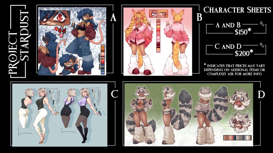 Summer time Socials https://twitter.com/StartdustV SB 50 Black and white -$70 flat color Sktech example https://portfolio.commishes.com/upload/show/1E7B3/ -$100 Full Render exmaple https://portfolio.commishes.com/upload/show/167O6/ +$20 for Nsfw Alt/ No Underwear after the auction The outfit will be like the sample above Changes may be discussed after the auction ends