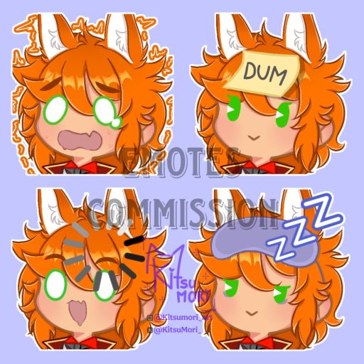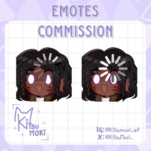 YCH #2 Animated EMOTES! SB: 15$ MI: 1$ AB: 90$ any species, human/furry/OC/fandom IMPORTANT: • [BID ONLY IF YOU ARE SURE] • [PAYMENT MUST BE DONE IN 24 HOURS OTHERWISE YOUR BID WILL BE REMOVED] • [READ THE TERMS AND CONDITIONS CAREFULLY] —1 Emote: 15$ —2 Emotes: 25$ —3 Emotes: 40$ —4 Emotes: 55$ —5 Emotes: 65$ —All Emotes: 70$ —Commercial use: 20$ extra Example: https://portfolio.commishes.com/upload/show/1ICTU/ https://portfolio.commishes.com/upload/show/1ICTS/ More Emotes: https://x.com/KitsuMori_/status/1885923622700605900?t=D8ujAbEebX8xm9LUB3FuNw&s=19 You will receive: •PNG image of each emote (500×500) •GIF with white background of each emote (512×512px , 1000x1000px) •The files will be delivered in a Google Drive folder. —Work with references. —Only Paypal. —Once the payment is made I will begin making the commission. —My TAT is 2 weeks. —The commission will be published in my portfolio and on my social networks. 𝗜𝗙 𝗬𝗢𝗨 𝗗𝗢𝗡'𝗧 𝗪𝗜𝗡 𝗕𝗨𝗧 𝗦𝗧𝗜𝗟𝗟 𝗪𝗔𝗡𝗧 𝗧𝗛𝗘 𝗬𝗖𝗛 𝗣𝗟𝗘𝗔𝗦𝗘, 𝗦𝗘𝗡𝗗 𝗠𝗘 𝗔 𝗗𝗠 𝗢𝗡 ⬇️⬇️ IG: https://www.instagram.com/kitsumori_art TW/X: https://x.com/KitsuMori_?t=