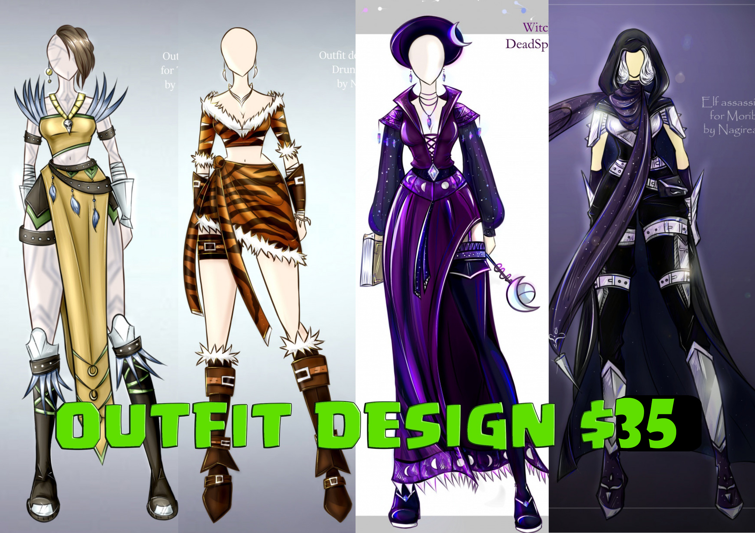 β I will draw NEW OUTFIT design for your character! (Any gender: female, male, femboy! any race!) πβπ¨ STYLE: Gothic, Cute (kawaii, Lolita fashion, anime etc.), FANTASY, Medieval, Tribal, Dark and evil, Warrior, erotic, sexy underwear. (It would be great if you tell me about your character!) π COLORED: - With your character $45 - Flat color $40 ( sample - https://www.furaffinity.net/view/60639619/ ) - Mannequin $35 (Simple background +$10) π NOT COLORED (sketch, only line): - With your character $30 - Mannequin $20 (Simple background +$5) π²Prepay on Hipolink https://hipolink.me/nagire_art or Boosty https://boosty.to/nagireart