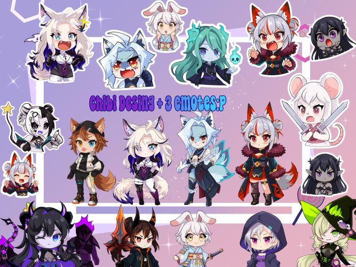 โจ AUCTION: Chibi Design + 3 Emotes โจ Send me your character and I will turn them into an adorable chibi version! ๐ Perfect for avatars, streams, social media, or collectors. ๐ Includes: ๐ Full chibi based on your character ๐ 3 emotes of the same character ๐ High-quality PNG files ๐ Editable PSD ๐ธ Auction Format: SB: 1 USD MI: 1 USD AB: 35 USD (With AB you can choose **one emote with a small animation** โจ. Examples here: [https://drive.google.com/drive/folders/1aeZj20KBSkhhoYiMuQtKajLtL4adjurG](https://drive.google.com/drive/folders/1aeZj20KBSkhhoYiMuQtKajLtL4adjurG)) ๐ Rules: ๐ You must provide a clear character reference. ๐งก Payment via PayPal. ๐ You are allowed to resell the design if you want. ๐ You can use the chibi and emotes on any platform. ๐ Files will be delivered once payment is completed. ๐ Turnaround time: 1โ5 days depending on workload. โจ Join the auction and get a super cute chibi version of your character + 3 emotes! โญ **My girlfriend is also running an auction โ go check it out and show her some love!** โญ ๐ [https://ych.commishes.com/auction/show/515Q8/nezumi-/](https://ych.commishes.com/auction/show/515Q8/nezumi-/)