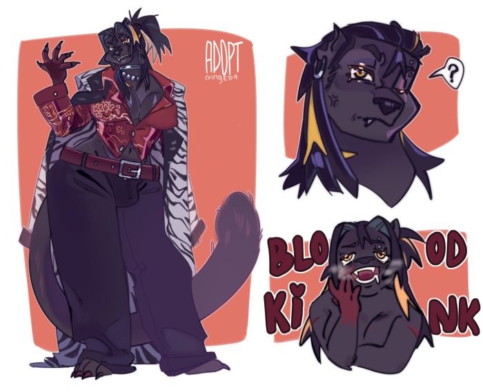 ⭐Please read the rules carefull⭐ SB: 50$ MB: 5$ AB: 300$ Bid more then 110$ - reference front and back Bid more than 160$ - nude reference front and back and different genitales Bid more than 190$ - additional outfit Bid more then 240$ - any additional art (SFW/NSFW) ⭐100% Payment must be made within 48rs after the auction end ⭐Payment only trough PayPal !! ⭐No refunds ⭐Deadline 1,5 month For more auctions, commissions and to be able to prebid on adopts follow me on FA :> -https://www.furaffinity.net/user/cringeessa ⭐If you have any questions, feel free to ask in comments⭐
