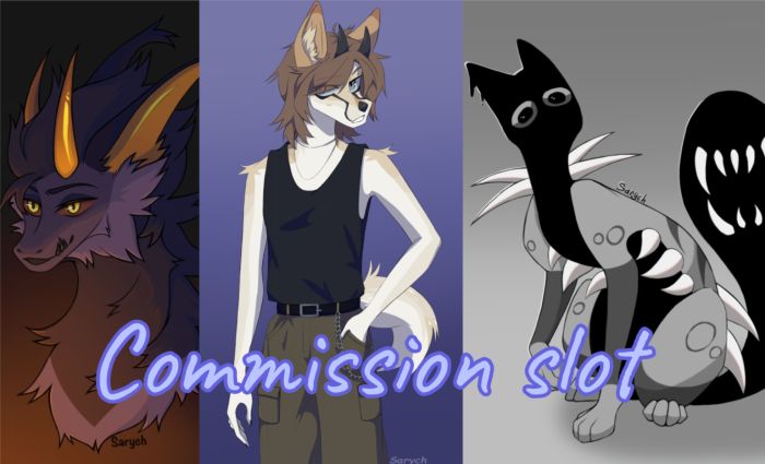 Commission slot ►-------------------------------------------------------------◄ !!My portfolio: https://portfolio.commishes.com/user/Sarych/ !!My examples on TH: https://toyhou.se/28457620.art-examples ►-------------------------------------------------------------◄ From $10 - detailed head From $20 - detailed half From $30 - detailed fullbody Light background - +$5 ►-------------------------------------------------------------◄ -Sketch commissions are also done in color and with shadows -The deadline is a whole month and a half -Payment after the sketch, within 24 hours -I'M DRAWING: cats, dogs, ponies, fluffy dragons, anthros (up to half the body) -I DON'T DRAW: humans, robots, monsters, complex backgrounds, complex nsfw content, complex details ►-------------------------------------------------------------◄ $Payment : •Lava.top (via Pay ) - Preferably •Hipolink (via Pay Pal) - Preferably •BOOSTY (via card)