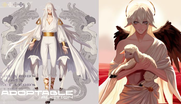 Quraks_Se made me this wonderful animation on the second art!!! Give her some love (✿◡‿◡) Gif: https://www.deviantart.com/qavese/art/God-s-Cursed-Adoptable-1114255579 ❀︎SB - 70 usd ❀︎MB - 5 usd ❀︎AB - 200 usd(commercial use) IF YOU WIN YOU WILL GET: An adopt without a watermark and in PNG, with and without background. You will get all the images in the picture in high quality (staric picture, right, left picture, gif of right art ). AB - Commersial use + I will be able to change the color palette (hair, skin color, eyes, clothes) to the one you want, I will make small adjustments to your taste. ALSO! You can to hold a character for no more than a month! Payment via Lavatop. Payment within 24 hours. You can do whatever you want with the design. You can resell, trade or gift the adopt.