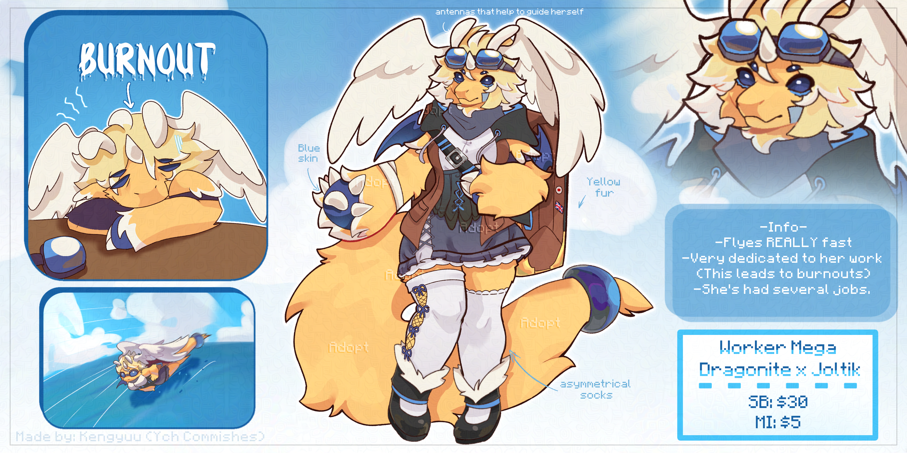 ►SB: $30 ►MI: $5 ►AB: $270 -$45 get a chibi icon -$70 get a back reference + 1 chibi icon + design change allowed (Optional: No clothes version [SFW] ) -Above of $120 gets all above + commercial use -$150 gets all above + custom full body extra art —Rules— ⌗Payment to be made in 24h if there are no warnings and a response once per day, second higher bid will be the owner or return to auction ⌗No holds. If the bid is over $100, payment plan can be discussed how flexible the payment plan can be. ⌗Serius bids only and >>make sure you have enough money before bidding<< ⌗No refunds after payment. ⌗Any questions DM in Bluesky or Discord ⌗Resell only for AB, but you can gift and trade by any price ⌗After payment full image size without watermark and PSD files will be sent via email ⌗payment method: PayPal only ►Paypal Email: adraw0577[at]gmail.com ⌗Credit me, please —————————————— Cross posted: Toy House: https://toyhou.se/36764496.open-mega-dragonite-x-joltik Fur Affinity: https://www.furaffinity.net/view/63386774/ —————————————— ►Previous costumers: https://loot.commishes.com/testimonial/on/Kengyuu/ ►My Carrd https://kengyuu.carrd.co/