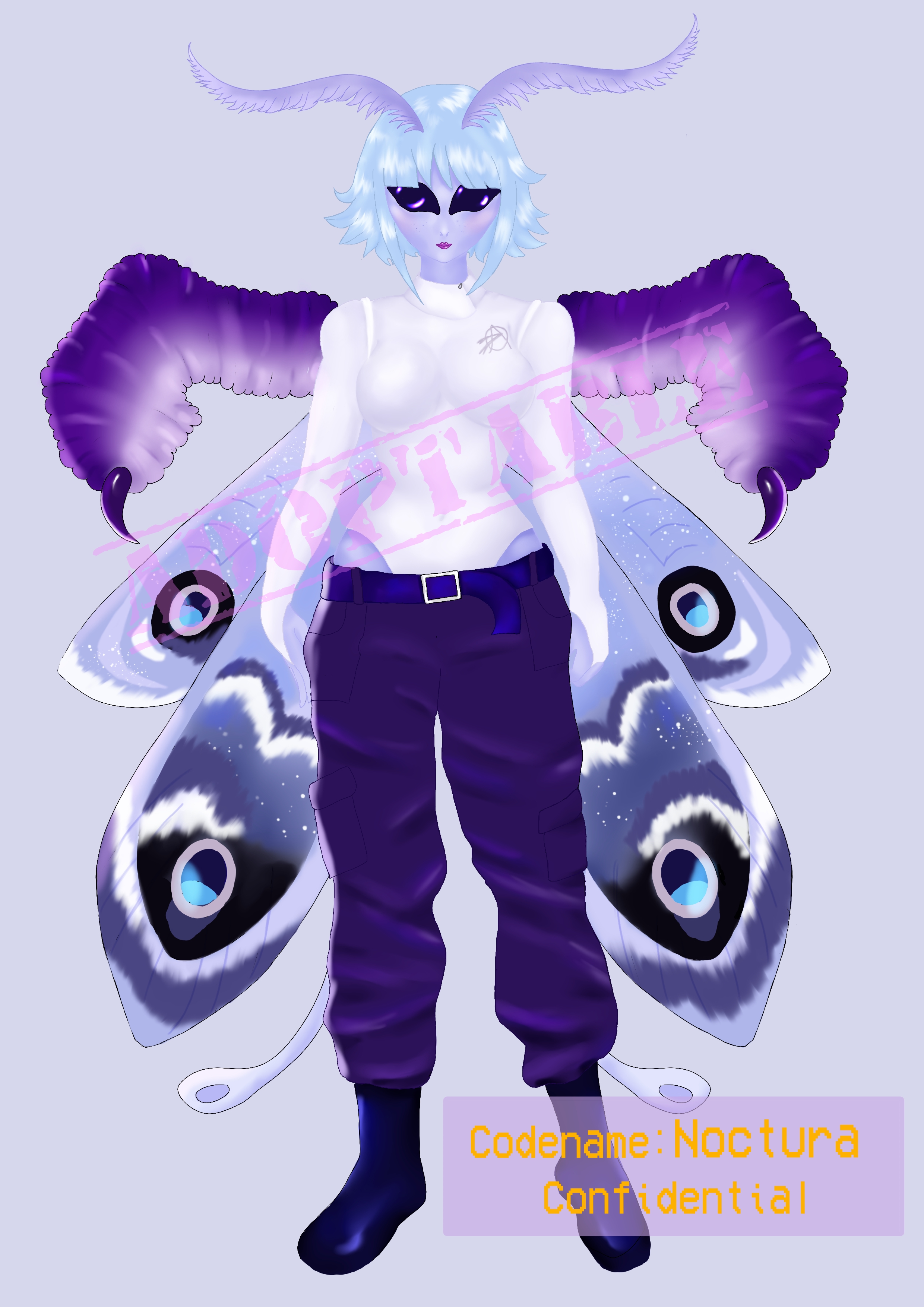 SB $15 MI $ 3 AB $70 Nude Version $ 35 โก After winning you will get good quality PNG/JPG files of the character without watermarks; Also included transparent version. โก Payment via ๐๐๐ฒ๐๐๐ฅ(USD), Payment must be made within 24 hours. Response within 24 hours after the end of the auction. ๐๐จ ๐ซ๐๐๐ฎ๐ง๐๐ฌ. ๐๐จ ๐๐๐ค๐ ๐๐ข๐๐ฌ. Noctura - The Sting of the Night Born within the cold, sterile walls of a hidden laboratory, Noctura was never meant to live a simple life. Once a fragile, moth-like creature, her delicate wings and soft frame were seen as nothing more than a foundation for ruthless experimentation. Scientists reshaped her nature, forging a living weapon in the shadows โ sleek venomous stingers were grafted onto her back, her body enhanced for speed, precision, and lethality. But power comes at a price. The experiments left deep scars, not only on her body but on her mind. Noctura's soul became a storm of instability โ torn between the remnants of her gentle origins and the ruthless survival instincts forced upon her. It was only a matter of time before her resentment turned to rebellion. The lab never stood a chance. The night she broke free, Noctura unleashed chaos โ tearing down the very place that shaped her into a weapon. Her escape left the facility in ruins, its creators scattered or silenced. With nowhere to go and haunted by her past, she was found by Squad A, an elite unit known for harboring those society rejects โ the dangerous, the unstable, the enhanced. They offered her a deal: control her fury, hone her skills, and in return, they would give her shelter โ and a purpose. Now, Noctura strikes from the shadows, her stingers swift and merciless, her loyalty torn but her instincts razor-sharp. She is the whisper in the dark, the sting that comes without warning