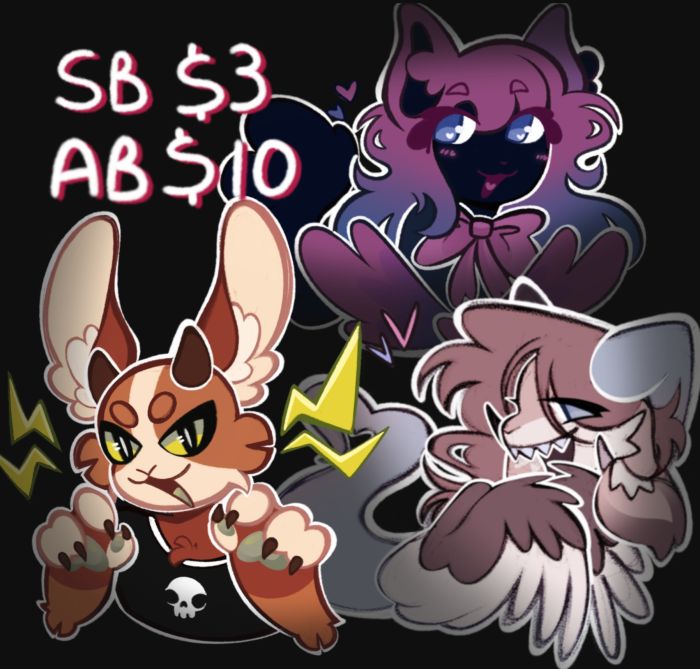 SB: $3 MB: $1 AB: $10 i do human / human-like / furries animals / robots / armor fandom characters / OC's ALMOST anything. NSFW, gore, kinks are fine, feel free to dm me for clarification :p payment via paypal, after clean-up sketch the deadline is about two weeks, but I usually work pretty quickly message me here or on discord - koiloe