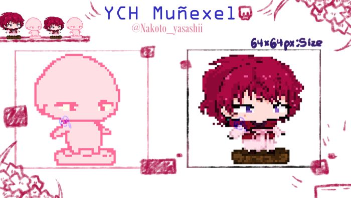 馃崱Starting bid: $5 (This YCH would be complete with shadows and everything else) It can be furry, human, or semi-furry, but some parts would be simplified. 馃崱Minimum bid: $1 馃崱Minimum bid: $5 Pixel art format: 64x64px Payment: PayPal only No refunds! 馃悋Rules: 馃尭Please note that the purchased drawing is not for commercial use. 馃尭You can modify the character (but it will maintain the same pose as the YCH). You can request a PNG image with no background or a white background, but it will have my signature. 馃尭Only serious offers are accepted. Thank you so much for your support!