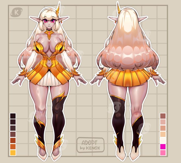 Remember that you can follow me on Patreon to see the preliminary sketches of my upcoming adoptables! patreon.com/user?u=69039776 *If you bid and regret it, please let me know, there is no problem removing your bid. The winner receives: PNG and JPG in high quality of the character. You have all rights to the character. Starting offer: $30 Minimum raise: $5 Nude version: <$80 Rules: - Pay by Paypal - Payment must be made within 24 hours. - Once the adoption is paid for, returns are NOT allowed. my email is [email protected] my discord is: kenox94 *I accept payments in Cryptocurrency, USDT exclusively