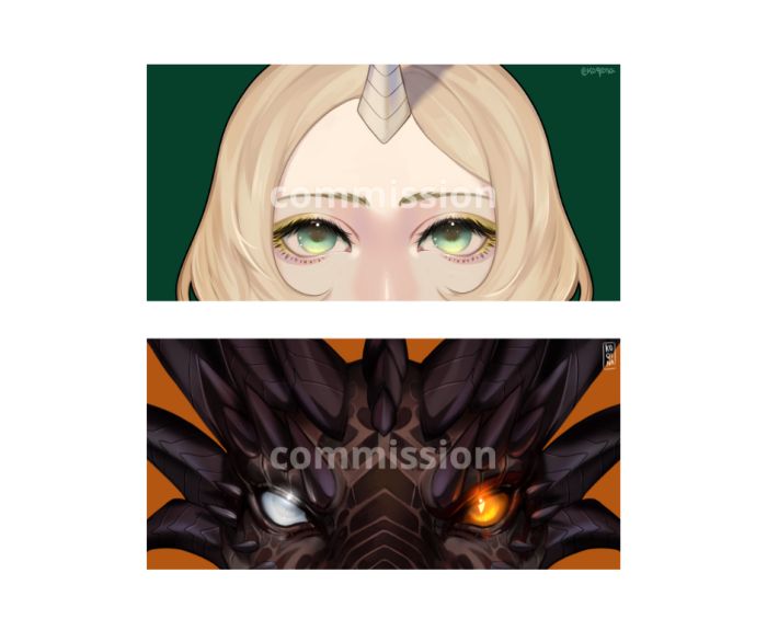 Hi! As you can see, my eye banner commissions are open! Rules: TAT: 6 days. Up-front payment via paypal. I do: kemonomimi, OCs, fanarts, furry. I don't do: nsfw, mecha, gore. Send me a DM on bluesky (@koqena.bsky.social) or discord (@liliryo) if you're interested