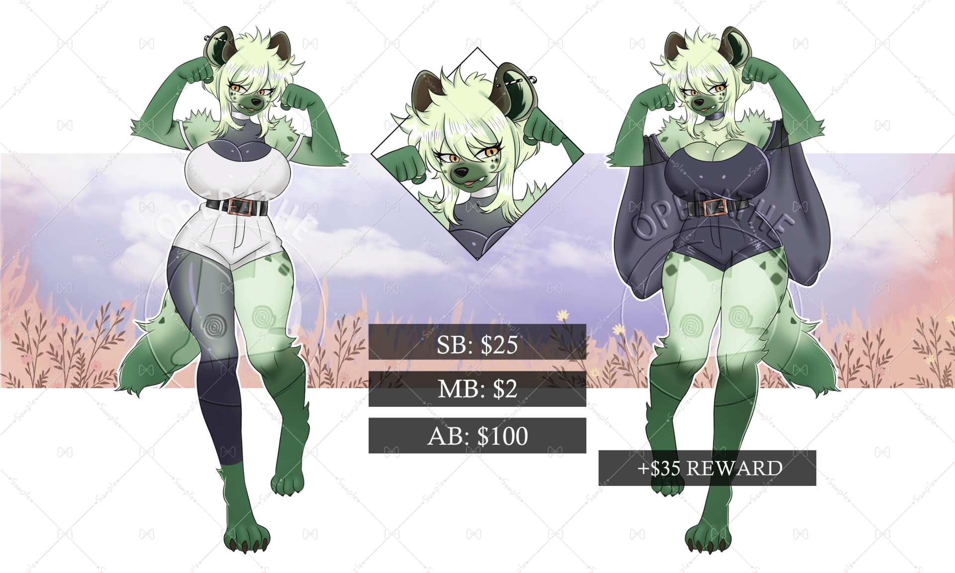 ♡────── AUCTION DETAILS ──────♡ > SB: $25 > MB: $2 > AB: $100 > +$35 gets extra skin. > +$45 gets extra skin. > +$60 gets nude ver (SFW). > +$70 gets nude ver (NSFW and Futanari ver). ♡────── PAYMENT DETAILS ──────♡ ♡ Payment via (ko-fi) ♡Payment must be done within 24 hours ♡Refunds are not accepted ♡HOLD: +$50 (1 month) ♡────── YOU'LL RECEIVE ──────♡ ♡High-quality PNG images -Included The banner showed withouth watermarks ♡Total freedom for redesign and info/bios addition. And commercial use. ♡────── EXTRA ──────♡ Note: Plz credit me as the designer :DDD (art by me) My toyhouse: https://toyhou.se/Operathe