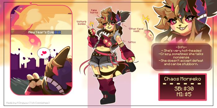 ►SB: $30 ►MI: $5 ►AB: $270 -$45 get a chibi icon -$70 get a back reference + 1 chibi icon + design change allowed (Optional: No clothes version [SFW] ) -Above of $120 gets all above + commercial use -$150 gets all above + custom full body extra art +$200 gets an extra simple gif animation —Rules— ⌗Payment to be made in 24h if there are no warnings and a response once per day, second higher bid will be the owner or return to auction ⌗No holds. If the bid is over $100, payment plan can be discussed how flexible the payment plan can be. ⌗Serius bids only and >>make sure you have enough money before bidding<< ⌗No refunds after payment. ⌗Any questions DM in Bluesky or Discord ⌗Resell only for AB, but you can gift and trade ⌗After payment full image size without watermark and PSD files will be sent via email ⌗payment method: PayPal or Ko-fi ►Paypal Email: adraw0577[at]gmail.com ►Ko-fi: https://ko-fi.com/kengyuu ⌗Credit me, please —————————————— Cross posted: Toy House: https://toyhou.se/37500020.open-chaos-morpeko-adopt Fur Affinity: https://www.furaffinity.net/view/63849801/ —————————————— ►Previous costumers: https://loot.commishes.com/testimonial/on/Kengyuu/ ►My Carrd https://kengyuu.carrd.co/