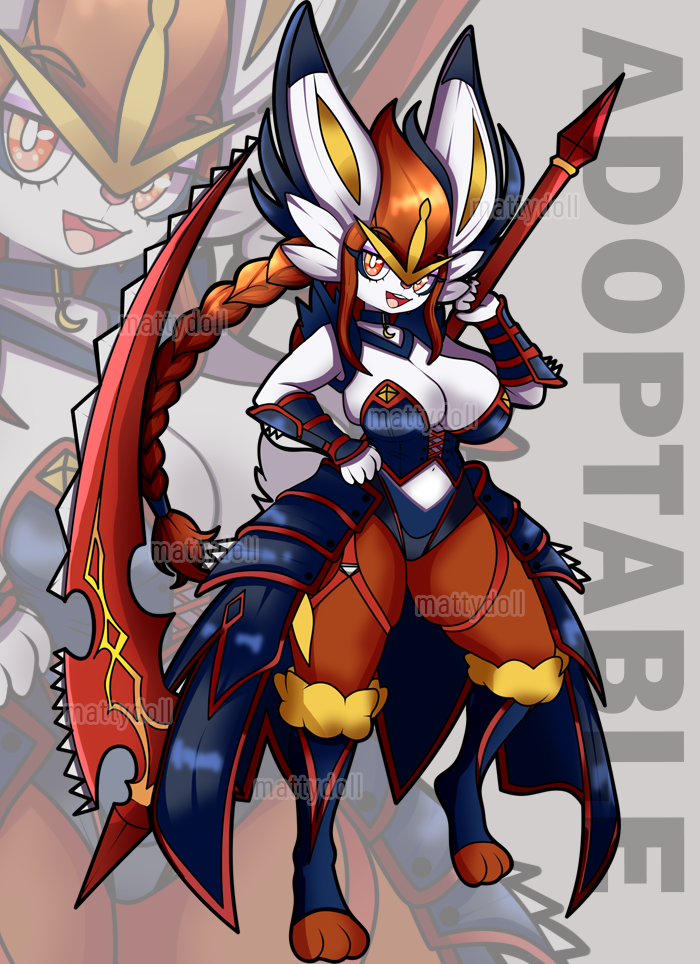 Scythe Warrior - Cinderace SB: $50 Mi: $5 AB: $550 Feel free to bid via ych or via furaffinity!(links below) BIDS UNLOCK; -> $100: possibility to change her colors -> $150: rendered half body(*skeb type commission) -> $300+: back reference -> AB: reference sheet, 1 rendered halfbody artwork(*skeb type commission), 3 core items drawings and commercial use. *skeb-type commission meaning: you give an explanation on how you would like the see the character, and I provide the artworks once it's ready. it will be impossible to modify the art piece and I won't require for sketch-lineart-color process approval, so be sure to describe how you would like your art piece properly. rules: ✦can be edit or redesign, if bid $60+, I can change her colors for you. ✦payment via PayPal or Ko-fi ✦bids in dollars($), payment in euros(€) ✦no refunds ✦can use for commercial purposes only if AB ✦payment in 48h, please don't bid if you cannot afford it / won't answer to messages and ghost me. ✦can show adopt layers as proof of legitimacy! ✦this auction, if unsold, will go on sale again 3 more times before to be added to my mystery adopt gacha. my socials: furaffinity.net/user/mattydoll (cross posted auction) https://x.com/MattyDoII https://ych.commishes.com/user/Mattydoll/ (cross posted auction)