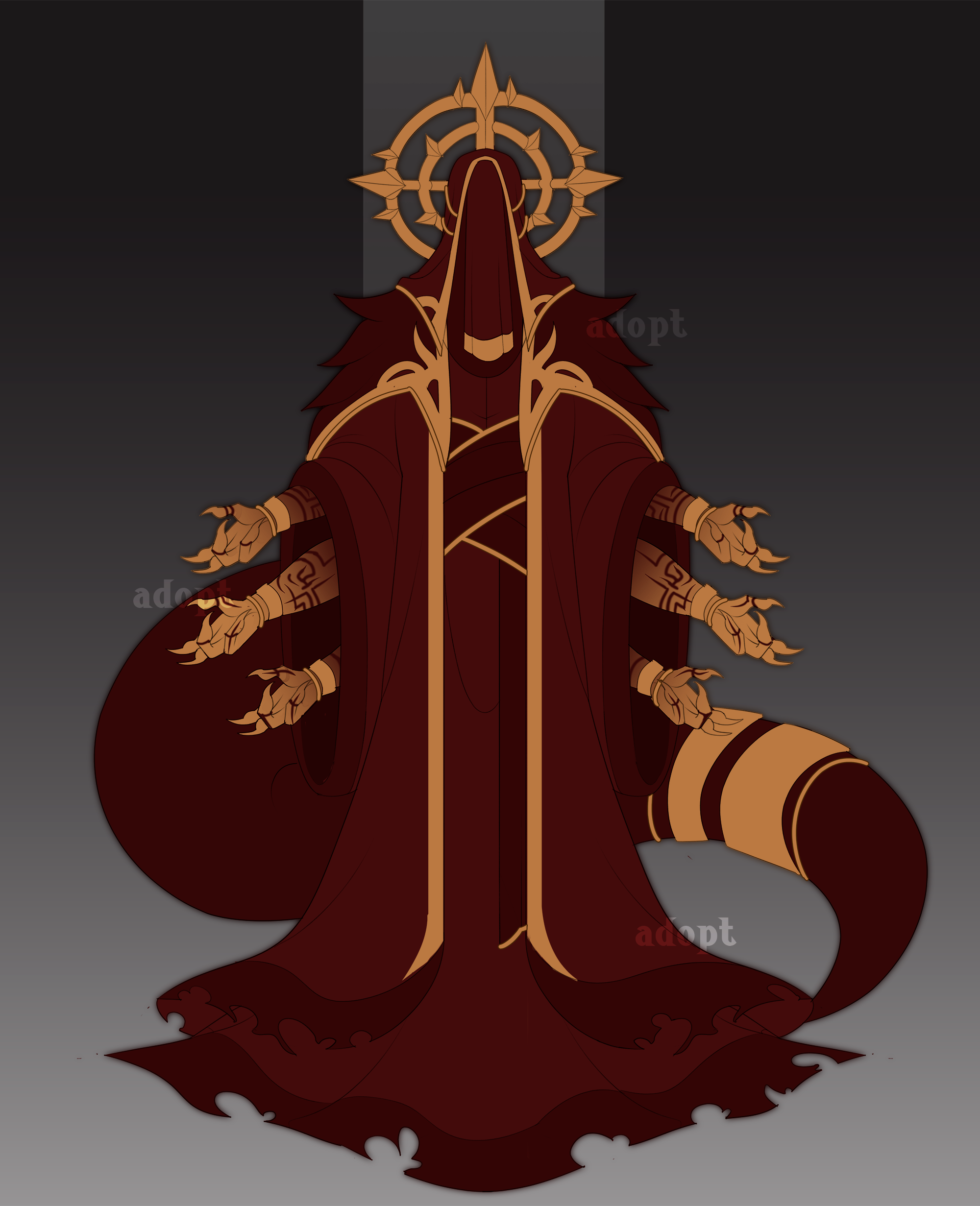 ๐ he was once an ordinary priest of a nameless order, but one day during a ritual he heard the answer. since then, his face has been hidden under a scarlet veil, because mortal eyes cannot bear what is reflected in his gaze. each pair serves its own vow: some bless, others punish. what the third pair is used for, no one knows. and no one wants to know. ๐ start bid: $45 AB: $150 $60 โ I can make changes, add/remove/change some elements AB โ commercial use payment method: - boosty, hipolink. lava.top โ character history is optional and you can change it or abandon it altogether; โ owner receives un-watermarked image and full ownership of the character and it's design; โ owner given all rights to this character; โ the buyer can make changes to the character, accessories, profession; โ no refund. โ payment must be made within 24 hours unless otherwise agreed (If you need to extend the time, just let us know) FA: https://www.furaffinity.net/user/darkayrio