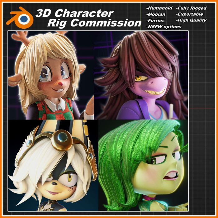 Turn your Adoptable/OC/or Character into a 3D Model optimized for just about any use! Will Include: -Original .Blend File with facial and Body Rig optimized for Blender 3.6 or above! -Optional .FBX File with Texture Atlas for maximum compatibility in other 3D Software! -Optional NSFW version! -5 Free Renders!