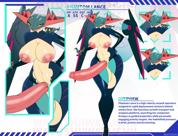 AGENT DOSSIER — DRAGAPULT Codename: Phantom Lance Status: Active Role: High speed Insertion Unit Affiliation: Intergalactic Agency Specialization: Shock entry, precision strikes, living artillery platform Overview Phantom Lance is a high velocity assault operative assigned to rapid deployment missions behind enemy lines. She functions as both transport and weapons platform, launching her Dreepys as guided projectiles while personally engaging priority targets. Her battlefield presence is brief, precise and devastating. She is rarely seen without at least two Dreepys accompanying her, perched along her launcher and shoulders like living ordnance. 🧠Personality Phantom Lance embodies a fusion of tactical authority and seductive confidence. She is calm, commanding, and unshakably self assured, treating junior agents with a strict but distinctly maternal demeanor. Her voice alone is often enough to restore discipline. She uses charm as naturally as intimidation, mixing teasing remarks with lethal efficiency. In combat she projects total control, enjoying the psychological edge her presence creates. Her confidence borders on provocative and she is fully aware of the effect she has on allies and enemies alike. ⚡Abilities & Combat Style • Extreme speed insertion and extraction • Fires Dreepys as guided spectral missiles • Phantom force allows her to phase through terrain and enemies • Can briefly cloak allied units during repositioning • Her tail is used for restraint, capture or execution • Dreepys operate as mobile scouts through vents and walls • Excels at aerial dominance and sudden ambush tactics Her combat doctrine emphasizes unexpected arrival, overwhelming impact, and immediate withdrawal. 🧩Habits & Quirks • Names every Dreepy under her care • Drinks bitter black coffee constantly • Obsessively cleans and calibrates her launcher • Lets Dreepys sleep curled inside her neck, chest or wings • Collects enemy insignia as trophies • Smells faintly of ozone and cold metal. She always try to cover it with perfume. 🌐Background Phantom Lance formerly served a hostile military power that treated agents as expendable munitions rather than living partners. During a prolonged siege operation, her assigned launcher brood was repeatedly sacrificed under reckless command orders. The final engagement resulted in the total loss of her original Dreepys. Refusing to accept replacements, she defected mid-conflict, destroying her command relay and escaping with the few surviving "children" she could recover. She was intercepted by Intergalactic Agency forces soon after and negotiated asylum in exchange for tactical intelligence and combat service. Since joining the Agency, she has taken responsibility for abandoned and orphaned Dreepys found in conflict zones, forming a new launcher brood under her personal protection. SB: $50 USD MI: $5 USD AB: $400 USD -$50 USD: HQ sheet without watermarks. Files with transparency. -$100 USD: Full render of her design and nude version. (You will also receive a version without her Dreepys!) -$200 USD: Female, pregnant or lamia version. -$300 USD: Can ask for some details change (breasts size, penis size, etc. I also work with hyper, lip nipples, dick nipples or anything you would like) OR alternative color palette of your choice! -$400 USD: Sketch commission of this character with one extra (hard fetishes allowed, please ask!) Satisfied clients! https://loot.commishes.com/user/profile/Watushii/ Finished work! https://portfolio.commishes.com/user/Watushii/ Ko-fi link (feel free to leave a tip and thank you for your support!) https://ko-fi.com/watushii Notes: -Her story can be completely changed if the owner wants! -You get full rights over this character once the payment is done. -Paypal only. -The auction may end earlier! -Upfront payment. -Payment plans available for AB (monthly payments of $200) -Clients that have pending payment plans with me, can bid in this auction and are able to make further payment plans. But the first payment should be done anyways! -No holds. -No refunds. -You can resell this character for the price you paid for at most. -Payment must be completed within 24 hours of the auction's end. Failure to do so will result in the cancellation of your purchase and the adoptable will go to the second highest bid or be made available again.