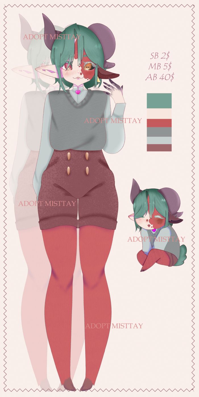 ✧SB 2$ ✧MB 5$ ✧AB 40$ - Payment via Hipolink or Boosty. When you have fully paid for the adoption, I will send you a character without unnecessary labels and in good quality. Please note that I will ask for payment with the site's commission (Hipolink/Boosty) - After the auction ends, I will write to you about the adopter - Refund is not possible (if you are not sure that you will be able to pay, please refrain from betting) ‼️I must say right away that the answer may not be immediately available, since I am asleep. 🌸INST: https://www.instagram.com/hidden_behind_misttay/ 🌸Twitter: https://x.com/misttaysart 🌸Telegram:https://t.me/+0JtK90-7GVgxNzRi