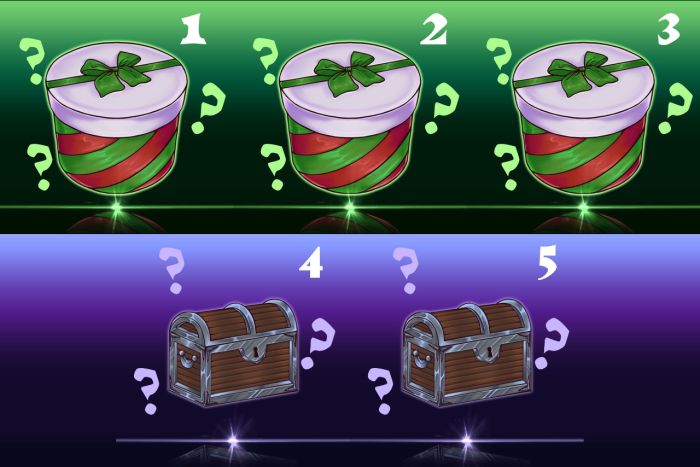 Choose the number of the box from 1 to 5 and catch your prize! 1 box - 25$ Good luck and happy hunting!
