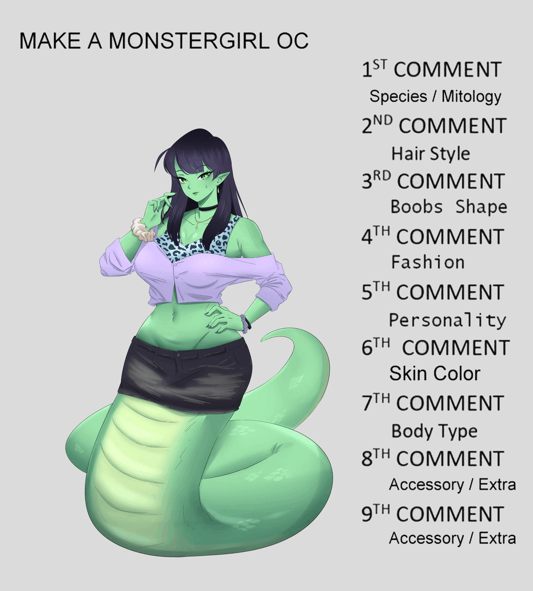 I will draw character base on your comment Important Rules: - you have to bid to play - one bid for one comment - comments without bidding do not count - you can overwrite other people's comments when passed the 9th - overwriting comments can be done freely, on the part you want to change - if bid only past 3rd comment will get a sketch, past 6th will get flat color. - if doesn't reach the goal, oc creation will be canceled or continue according to the winner - rules will be adjusted during bidding, to stay conducive and minimize misunderstandings - have fun with your creations SB - $10 MB - $5 Bid over : $180 - Nude version $220 - I draw 3 headshot expresion $300 - Futa version About payment: - PayPal only, USD - Payment must be made in 48 hours after the auction ending thank you