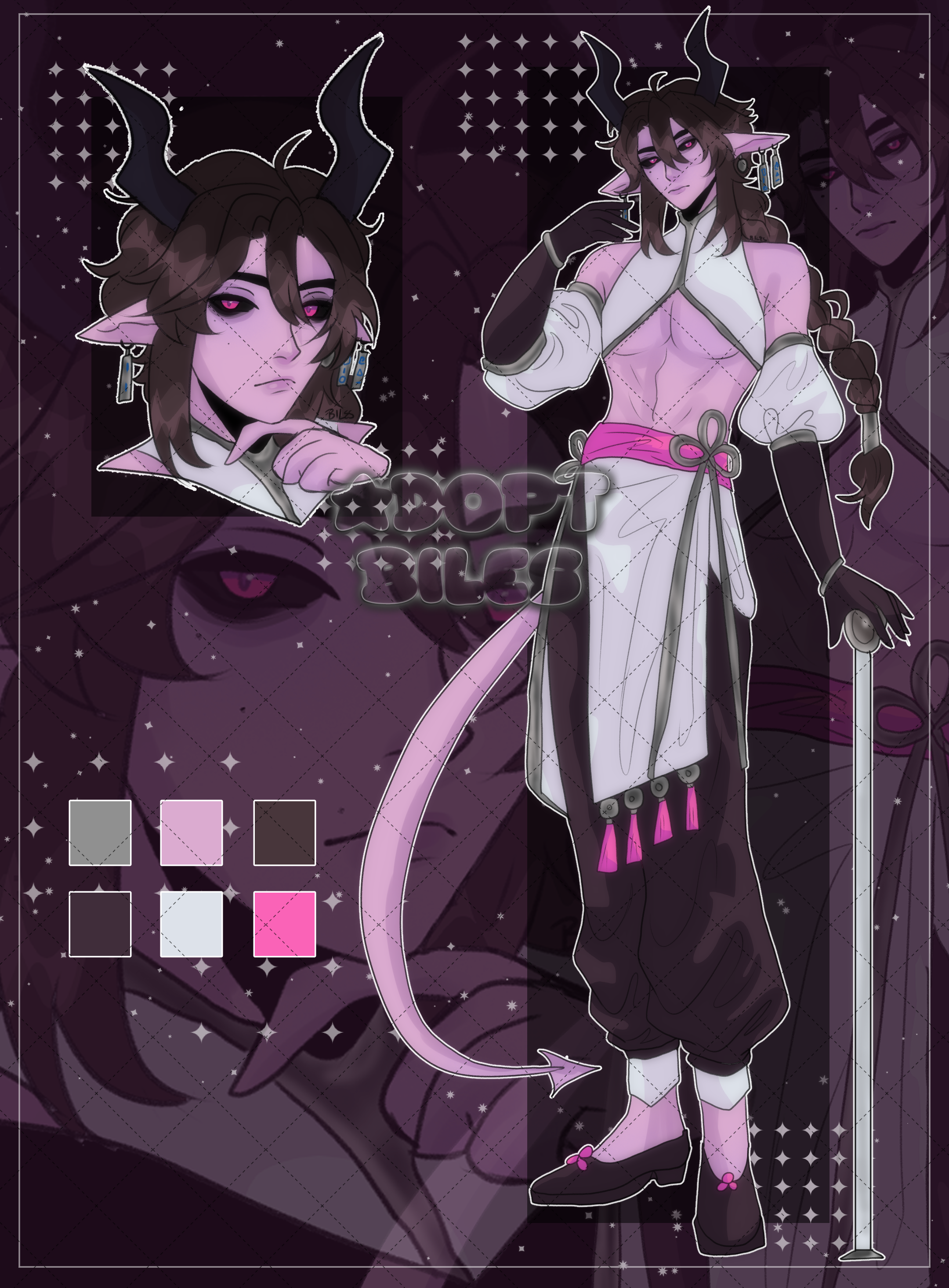 payment via paypal! i will transfer the adopt via Toyhou.se or by email, whichever you prefer! AB includes commercial use AB payment plans: I can hold the Adopt for up to 2 weeks so you can pay for it if you wish after payment you will receive png versions of adopt (without watermark) Serious bids only, please! Bids placed by me are updates of bids made on cross postings: on deviantart: https://www.deviantart.com/makihiro/art/OPEN-TIEFLING-BOY-ADOPT-1304416850 on toyhouse: https://toyhou.se/38014056.open-tiefling-boy for custom commissions: https://vgen.co/biles blacklist/t.o.u: https://toyhou.se/~bulletins/1217997.adoptable-tou-blacklist contact me: DA: makihiro TH: biles Vgen: biles YCH: biles Discord (long response time): hiroriki /!\ I use ONLY the sites mentioned above, be careful of scams/!\ T.O.U: 1.No refunds. 2. The buyer may resell it for the same price they paid (if no additional artwork has been added). 3. Only BID to pick up the adopt if you really are interested, If payment isn't made within 42 hours, the adopt will be available for other buyers again. If I don't get a response within 24 hours of the first message, it will also be open again. 4. The buyer is free to modify or add to the design, as long as the original artwork remains unchanged. 5. The adopt can be used for any personal purpose; commercial use is only allowed if it has been paid for.