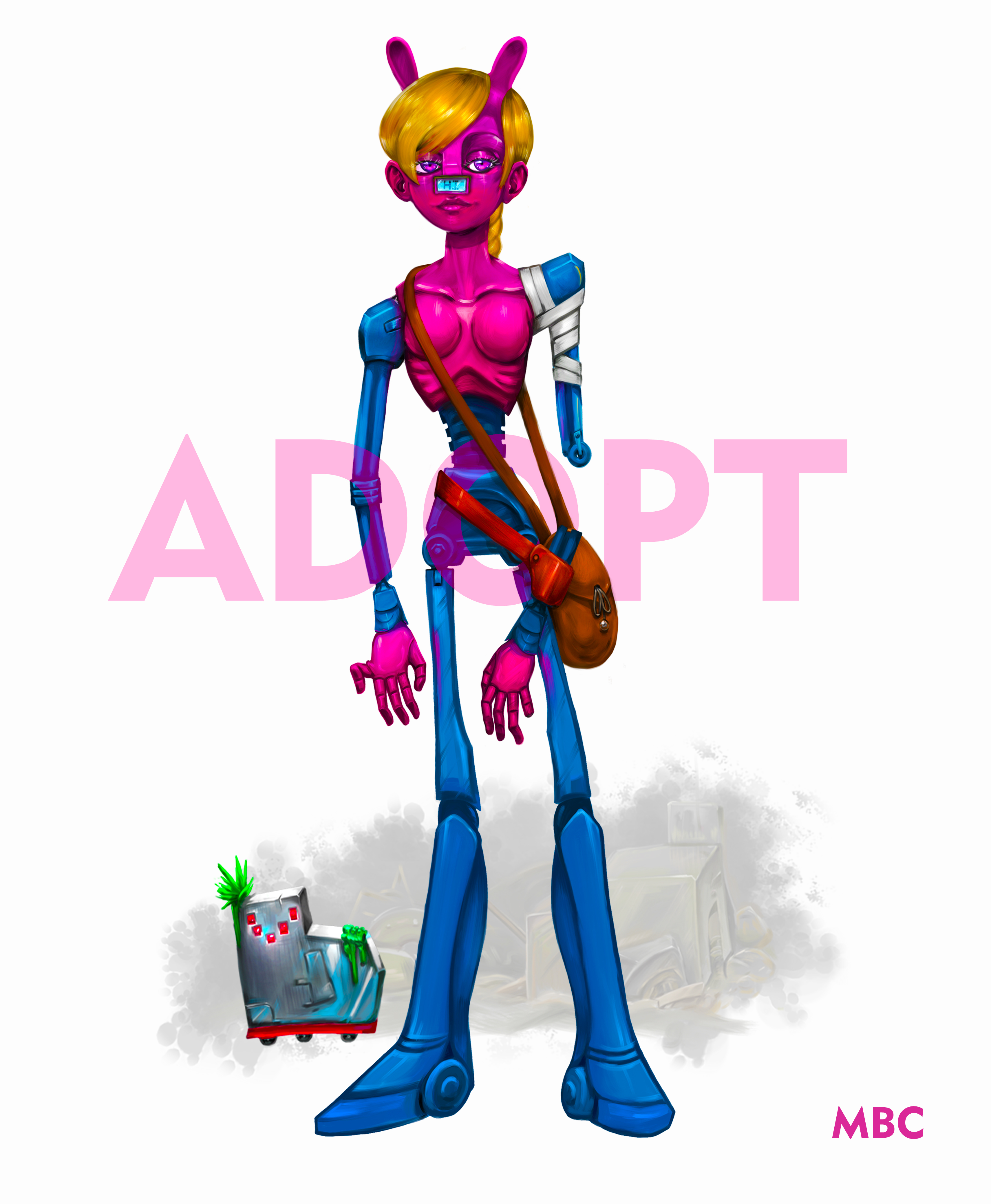 Hello everyone! For auction today is: ⚙️ Retro-Futuristic TRASH Android Adoptable ⚙️ (Unique Character Design with Companion) SB: $7 MB: $2 AB: $200 Character Details * This unique cybernetic character features a high-quality blend of organic and robotic elements: * Design: Distinctive pink skin/shell contrast with blue mechanical limbs and long golden hair. * Companion: Includes the small robot-unit shown in the preview. * Versatility: Perfect for Sci-Fi, Cyberpunk, or Post-Apocalyptic settings. What You Will Receive * Adopt without watermark (High-quality JPG format) * Adopt without background (Transparent PNG format) * Fully Organized PSD file with all layers (perfect for easy color editing or part swapping) Rules & Terms of Service (TOS) * Payment Method: BOOSTY via PayPal and Credit Cards. 100% prepayment required. (I will provide a simple step-by-step instruction on how to pay via Boosty once the auction ends.) * Auction End Time: 48 hours after the last bid/auction ends. * Payment Deadline: Payment must be made within 48 hours after winning the auction, or the adopt goes to the previous bidder. Usage Rights: I reserve the right to use the original drawing as a portfolio example (the character ownership transfers to you, but the image is part of my portfolio). If you have questions, you can contact me via private messages. (You can find me here!) https://twitter.com/Mr_Blue_Cake https://www.furaffinity.net/user/mbcake/ https://www.tumblr.com/blog/kaoru13th adopt, adoptable, android, cyborg, robot, robot girl, sci-fi, cyberpunk, post-apocalyptic, mecha, futuristic, prosthetic, artificial, synthetic, companion, pet bot, original character, oc