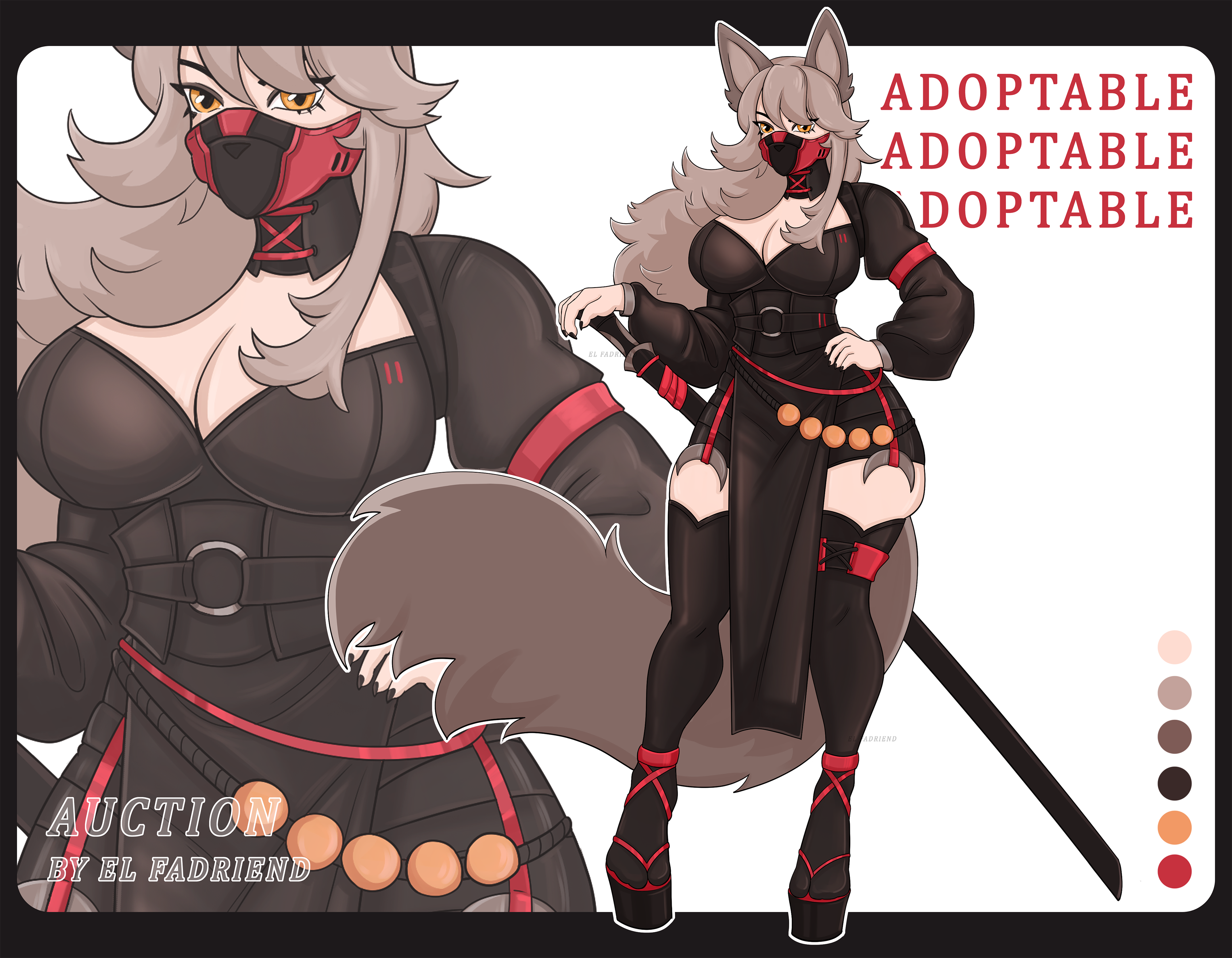 cross-posting on FA and DA~ Starting Bid: $25 Minimum Bid: $2,5 Above $70 + NSFW Version Above $100 + Chibi Art Above $200 + Character Reference Sheet (In Cloth) Above $300 + NSFW version of Reference Sheet Above $350 + Additional Art AB: $400 + Any Alt Version (color palette/clothes/gender/other) (includes ref sheet) Additional options (extra on top of winning bid): +$50 second outfit or lingerie +$10 extra hairstyle +$10 emotion (new face, same base) +$25 additional version with different colors +$5 add accessory +$5 add piercing +$5 add tattoo Payment Options: Stripe Payment only (you can use Paypal in this) Payment must be completed within 24 hours of the auction ending. Failure to do so will result in the cancellation of your purchase, and the adoptable will be made available again. However, if the bidding exceeds $150 and the winner is unable to pay within the initial timeframe, please contact me to discuss a payment plan. Notify me within 24 hours of the auction's end if you wish to opt for this extended payment option. For the payment plan, two separate payment requests will be issued. The first payment is due immediately, and the second within the agreed timeframe. Once both payments are received, you will be provided with the editable files. After payment, I'll send you a link to a folder in Google drive. X/Twitter: https://x.com/fadriend Furrafinty: https://www.furaffinity.net/user/donjuan. BlueSky: https://bsky.app/profile/el-fadriend.bsky.social