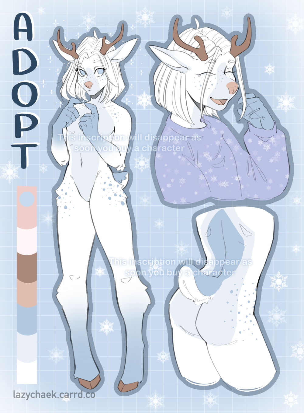 SB: $80 usd AB: $160 usd > $100 usd - +nude version ♥ after buy the adopt, I'll send you a file with the character in high resolution without watermarks ✦ Payment: PayPal F&F My carrd and other socials: https://lazychaek.carrd.co/#
