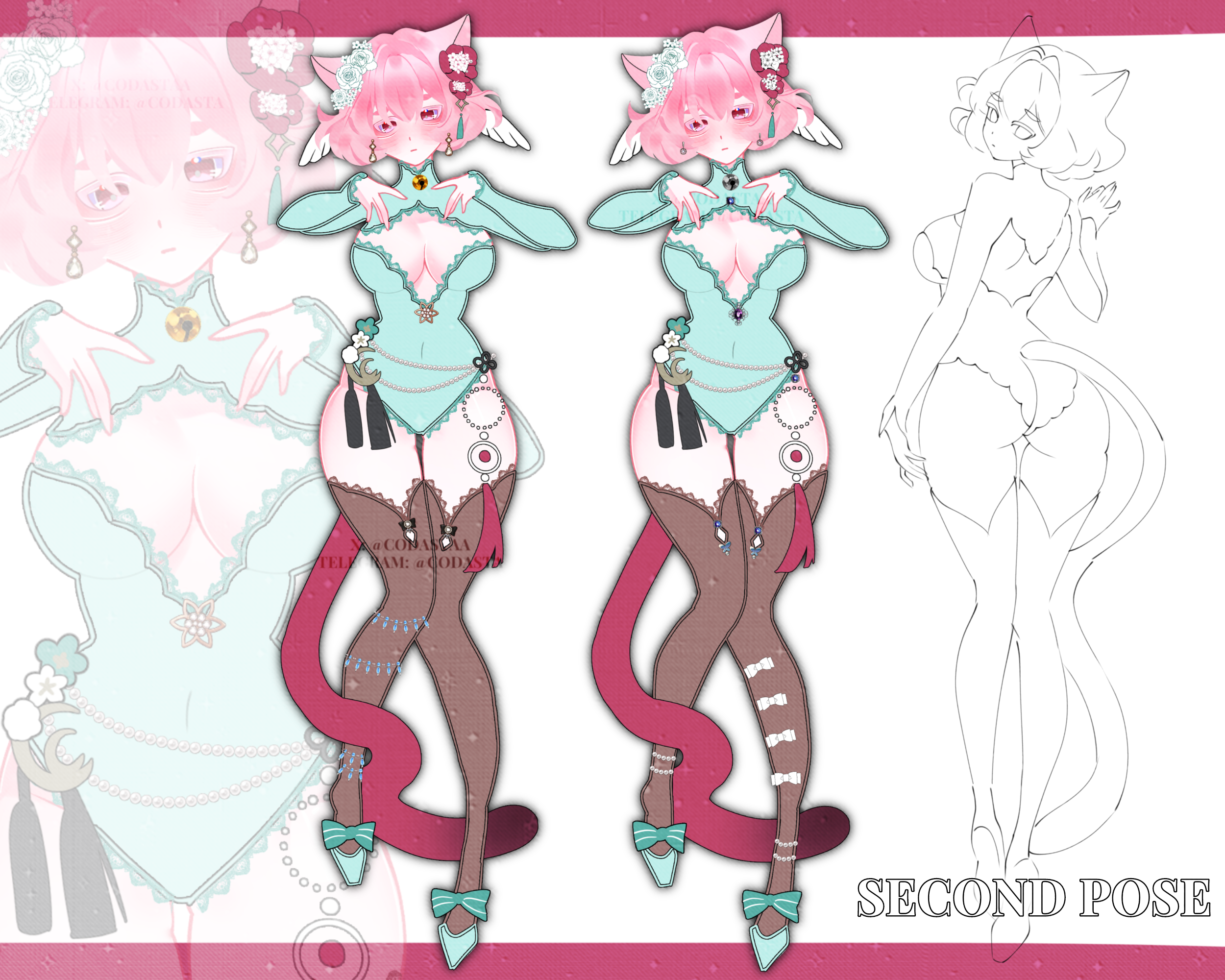 Hi!^^ ☆ SB: $1 MI: $2 ☆ bid $1 - PNG images on transparent background (2 versions with different accessories) $15 - commercial use $35 - base color + middle render of second pose $50 - full render of both poses $80 - +full render full body art Payment via Boosty or Hipolink in USD within 24 hours — or just let me know if you need more time! I only write in CRM! My telegram: https://t.me/Codasta X: https://x.com/Codasta