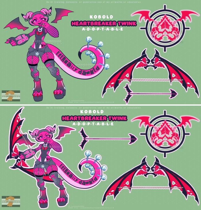 A mischievous dark cupid for hire, this twink kobold archer curses cheating partners and doomed romances with precision and a playful smile. He doesnβt bring lovers together , he makes sure they fall apart. ππ βΉ ββ β¦ ββ βΉ ββ β¦ ββ βΉβΉ ββ β¦ ββ βΉ ββ β¦ ββ βΉβΉ ββ β¦ ββ βΉ ββ SB: $30 MI: $3 AB: $110 βΉ ββ β¦ ββ βΉ ββ β¦ ββ βΉβΉ ββ β¦ ββ βΉ ββ β¦ ββ βΉβΉ ββ β¦ ββ βΉ ββ Winner will get: π Transparent Background π With and w/o Bowπ π Emblem and Weapon π PNG Reso: 3000+ pixels πFor AB buyers: Minor changes are cool, just donβt overdo it. Color tweaks are okay. Commercial Usage unlock βΉ ββ β¦ ββ βΉ ββ β¦ ββ βΉβΉ ββ β¦ ββ βΉ ββ β¦ ββ βΉβΉ ββ β¦ ββ βΉ ββ RULES: πΈ PAYMENT : WISE, BOOSTY or PAYONEER (can pay w/ PAYPAL) (I have referral code for WISE) πΈ PAYMENT PLAN : Down payment splits need mutual agreement. Files will only be sent once FULLY PAID. πΈ I'll send the files after FULL PAYMENT. β The payment must be made within 12 hours. Failed to response will add to my public BLOCKLIST. π« Please commit before joining. Backing out after winning will be blocklisted. π« NO REFUNDS after payment and NO HOLDS. Β©οΈ If itβs resold as-is (no extra art), please keep the price close to the original. π« Don't resell in higher price except with add. artwork commission π« Art by human hands only, Not for AI learning or dataset collection. βΉ ββ β¦ ββ βΉ ββ β¦ ββ βΉβΉ ββ β¦ ββ βΉ ββ β¦ ββ βΉβΉ ββ β¦ ββ βΉ ββ Feel free to contact me, since Comments on site is temporarily disable. β CRM: https://crm.commishes.com/commission/BaeBaDooBee/ β DISCORD : baebadoobee0606 β BLUESKY: baebadoobeedoo.bsky.social β Gmail Chat: [email protected] βΉ ββ β¦ ββ βΉ ββ β¦ ββ βΉβΉ ββ β¦ ββ βΉ ββ β¦ ββ βΉβΉ ββ β¦ ββ βΉ ββ π©Cross-posting https://www.furaffinity.net/user/baebadoobee/ https://www.deviantart.com/baebadoobee