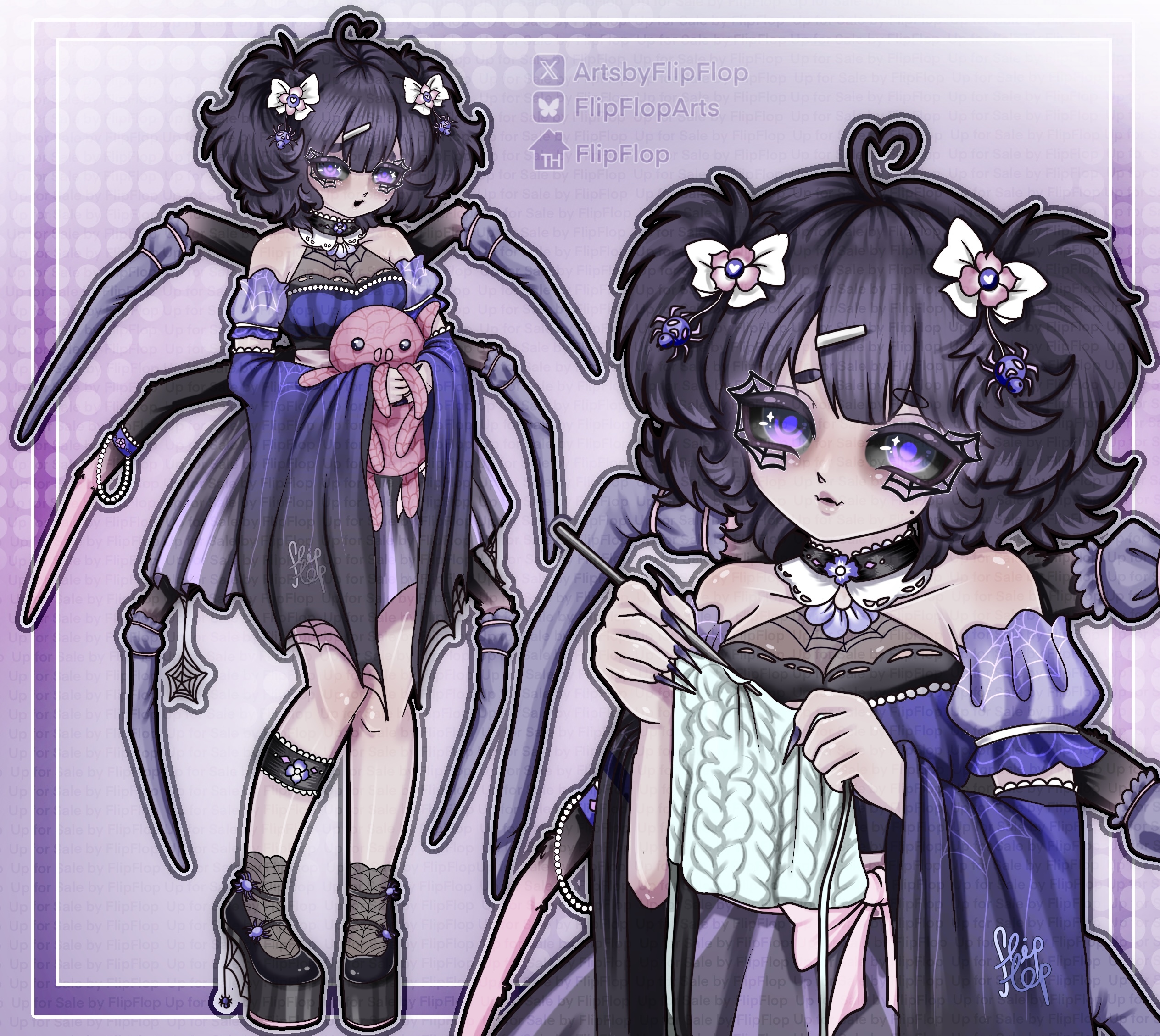 Web Weaver 馃Ф SB:聽$20 USD MI:聽$3 USD AB:聽$125 USD 鈴陈燗uction ends:聽3 days after first bid [If no one bids within 24 hours, I'll reduce auction time to 1 day only] 馃挸 Payment Options PayPal Ko-fi (supports CashApp) Payment holds are only available for trusted buyers (those who have purchased from me multiple times)! 馃搸 Rules By bidding, you agree to my聽Adoptable Terms of Service聽:聽https://toyhou.se/28205609.adopts-tos 馃摑 Notes Another cutipie as part of my career based adopts for march, goth spider sweetheart who loves to crochet <33 Winner will receive the none watermarked versions with and without background after payment! signiture and socials remain but can be placed elsewhere in piece. Crossposts: Toyhouse:聽https://toyhou.se/38175976.web-weaver-open Furaffinity: https://www.furaffinity.net/view/64267656/ Deviantart:https://www.deviantart.com/flipfloparts/art/Web-Weaver-Adopt-Open-1307859890
