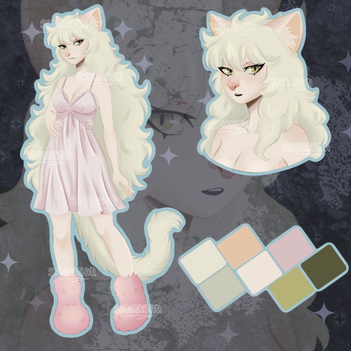 A soft feline girl with long cream hair, sharp green eyes and a quiet confident aura. Her design features delicate pastel tones and a cozy, elegant outfit that gives her a calm yet slightly mischievous personality. The adopt includes: • Fullbody reference • Portrait / close-up • Color palette Bidding SB (Starting Bid): $30 MI (Minimum Increase): $3 Bid ≥ $65 — Bonus (Your Choice): • NSFW version of the base pose (same pose as the fullbody) OR • Outfit change for the fullbody Bid ≥ $85 — Ultimate Bonus (Your Choice): • Custom pose + custom outfit OR • Custom NSFW version