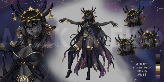 Hi! SB: $20 MI: $5 - Bids over 35$ - commercial use (4 files total) - Bids over 25 $ - b/w lineart without colors + emotions (png) (4 files total) -Payment: PayPal only. -After payment, you will receive: An image without watermark in high quality (JPG format), an image without background (transparent) and watermark in high quality (PNG format). 2 Files total -You can do whatever you want with the character. - No refunds are allowed. - 100% prepayment -Once the auction ends if you don't answer past 48hs I will start a new auction with this adopt a little later - I can make small changes to the design - free. More than 5 changes - the 6th change costs $5, and each subsequent change costs $5. Example: change the pattern on a glove, slightly change the shape of an outfit, add a small accessory, etc. Large changes: 1 free, the second change is $5, the third change is $10, the fourth is $15, and so on, each subsequent change costs $5 more than the previous one (For example: change the tail, change large design elements, change the color palette of the entire design, add weapons etc.) I'll draw a back view for an extra $20 and a side view for $15 Deviant art (If I place a bet myself, it means that it is a bet from a person from this site) https://www.deviantart.com/melkmeko/art/ADOPTABLE-Nicole-1308898572 Thank you! <3