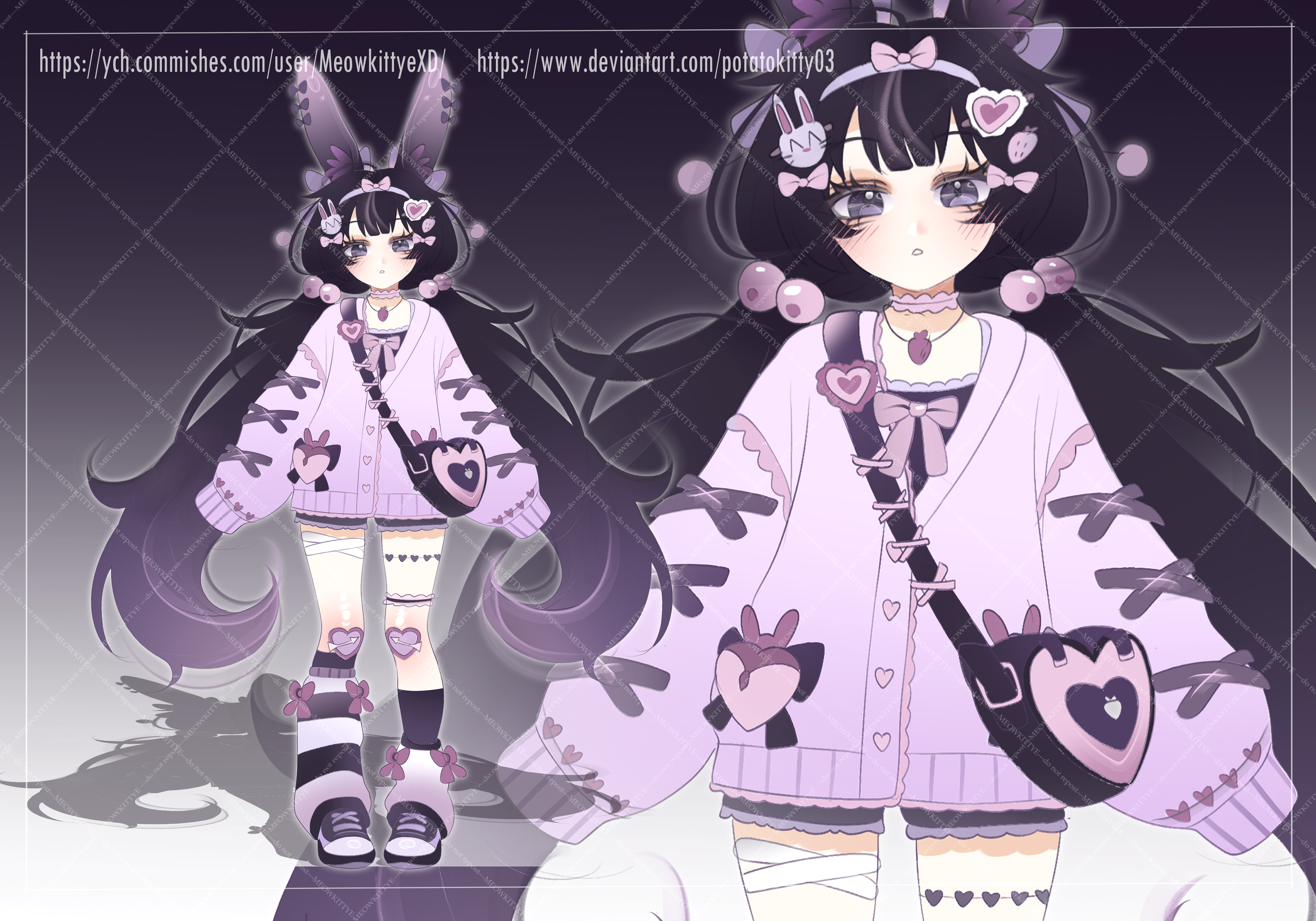 ✩MI - 1$ ✩ SB - 70$ ✩ $150- free color changes ✩ $200-second outfit ver. ✩ $350 - Full Body commission ✩ $600 - Collector’s Tier: Full Character Sheet (front, back, side view) + 3 emotions ♡Deadline:3 days-1 month Payment plan is allowed^^ The winner have a week to pay (a month for bid above $250). Commercial use from $250 Minor edits from 5$ RULES ✩ Payment PayPal / Boosty / Hipolink ✩ Payment first ✩ Do not sell the character for more than it was bought ✩ No refund ︵‿︵‿୨♡୧‿︵‿︵ ✩Owner may change the design ✩ Owner gets full size without watermark MY SOCIALS: ฅ^>ω<^ฅ DeviantArt: https://www.deviantart.com/potatokitty03 Twitter: https://twitter.com/MeowkittyeXD Furaffinity: https://www.furaffinity.net/user/fumikomeow Hipolink: hipolink.net/meowkittyexd Boosty: https://boosty.to/potatokittyxd My reputation: https://loot.commishes.com/user/profile/MeowkittyeXD/ BSKY: https://bsky.app/profile/meowkittyexd.bsky.social Discord: meowkittyexd Telegram: https://t.me/MeowkittyeXD All auctions and commissions are on my YCH and DA! You can also write to me on twitter or discord^^