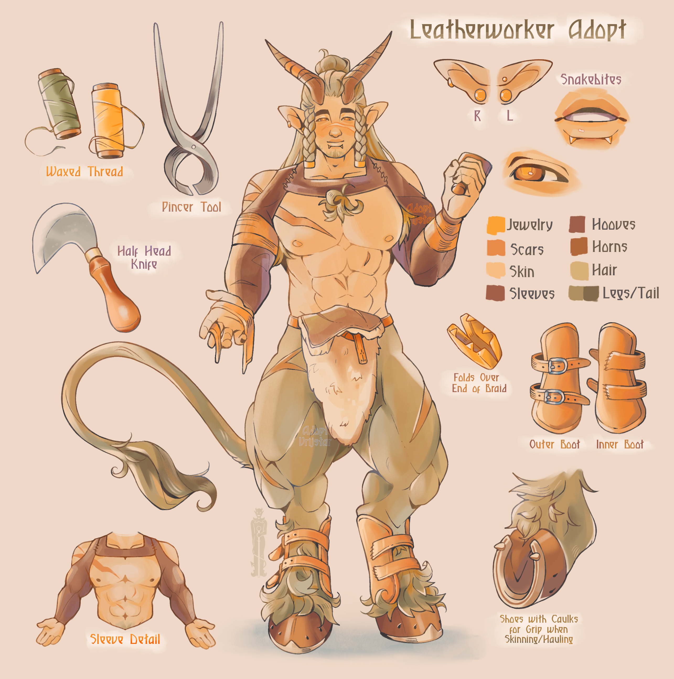 Leatherworker adoptable, great for world building or even D&D! This is my first ever adoptable, I hope you receive it well! Payment with PayPal or Venmo due when auction is over and I contact you! SB: $40 MI: $5 If you wish for any changes after it鈥檚 bought I can do it for an additional cost. This is crossposted to places like TH and FA and will be kept updated!
