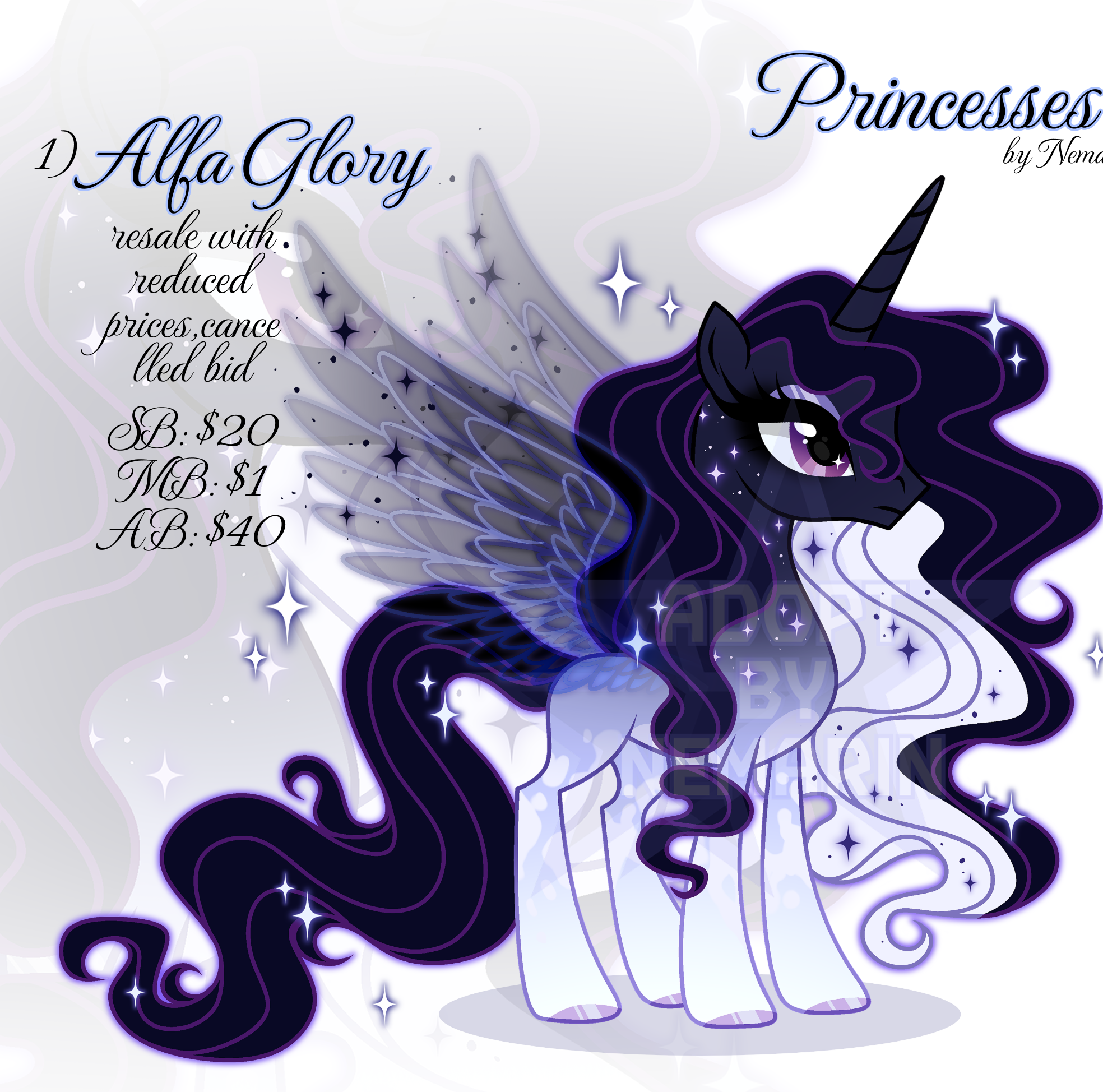 馃寣 ADOPTABLES 鈽侊笍 from scratch 1) 馃寣 ALFA GLORY 馃寣 SB: $20 MB: $1 AB: $40 (+ name and description) i can holds it for 2-5 days if you want to hold for longer - deposit (starting at $10) 馃寣 RULES 鈽侊笍 Do not resell above the purchased price, only if there are arts, the price may be higher! Adopt does not apply to returns!I provide proof together with the adopt if you need ! The auction will last for 3 days I can finish ahead of schedule. 馃寣 PAYMENT 鈽侊笍 Paypal Lava Top (bank card or Paypal) don't worry, I have instructions on how to pay!