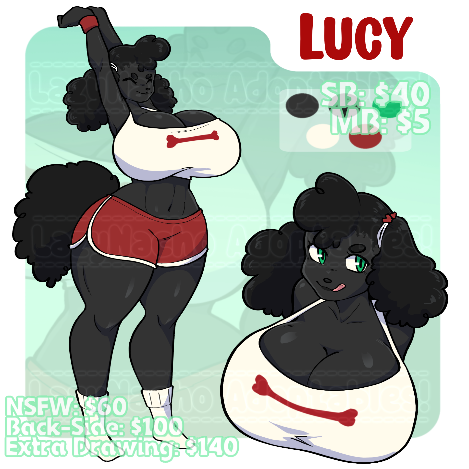 馃枻 SB: $40 馃枻 馃 MB: $5馃 TIERS: 鉂わ笍 Nude version over +$60 鉂わ笍 馃枻 Back Side View over +$100 馃枻 鉂わ笍 Extra Drawing of the adopt (Fully Rendered) over +$140 鉂わ笍 馃枻 Get a Second Character added to the extra drawing over OR a 2nd extra drawing of the adopt +$180 馃枻 ADDITIONALS: (Note; these are added after the final bid winning, not included within bidding) 鉂わ笍 Futa Version: $15 (only applied to nude versions) 馃枻 Boob Size Change: $5 鉂わ笍 Extra Color Palette Version: $5 馃枻 Extra Accessories/Complex Tattoos: $1-$5 鉂わ笍 Extra Outfit Version: $20 馃枻 Look at previous reviews of my work 鉂わ笍: https://loot.commishes.com/user/profile/LazyNacho/ 鉂わ笍 You鈥檒l receive high quality .PNG of picture above without the watermarks 馃枻 Payment via PAYPAL 鉂わ笍 MUST RESPOND WITHIN 24 HOURS AFTER AUCTION HAS ENDED 馃枻 Description/Name can be added 鉂わ笍 15% off future commission/YCH prices when using this adoptable! 馃枻 Returning customers can pay in parts of bids over $120! (Full payment must be received before I can send the finished drawing/sheet)(Entirety must be payed within 1 month after first partial payment)