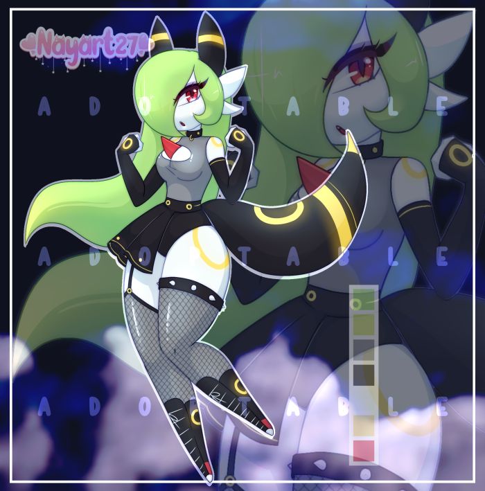 Sb: $20 Mi: $3.50 Ab: $100 USD (PSD + comercial use) Shiny: https://ych.commishes.com/auction/show/5AOGB/gardevoir-umbreon-shiny/ RULES -Only acept PAYPAL -Please make sure you have enough money to pay before bidding. -Payment must be made in less than 24 hours. -Once the payment is sent, I send you the image in a drive link or gmail. -Once you have paid the adopt, NO refunds are permited. -DON'T copy, steal or trace my desings or base. -Credit the desing. Desing and base: Nayart27 Support me: KO-FI: https://ko-fi.com/nayart Furaffinity: https://www.furaffinity.net/user/nayart27 Telegram: https://t.me/sweetnayart Twitter: https://twitter.com/NayartNsfw