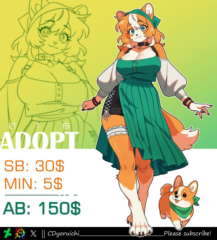 [SB]: $30 [MI]: $5 [AB]: $150 + commercial use Emergency email [email protected] (in case the CRM is down and you can't contact me) _______________ • Payment on LavaTop (PayPal | Card) !!!Stripe is unavailable!!! • Payment within 24 hours after the end of the auction • Payment plan for $100+ (down payment 50% other 50% within one week) • No refund(even if paid in payment plan) • If payment isn't made, your bid will be cancelled and the previous bidder becomes the winner • In case of non-payment by two or more bidders, the auction is restarted • After receiving payment, you will have access to the source files(PNG, 4k): with and without background /// When making edits, you also receive both versions of the file in a corrected form /// From $50 - color changes (1 edit) /// you can change the color of the adopt or details on it once /// From $80 - minor detail changes (1 edit) /// you can add or remove a detail from the adopt once /// $150 - commercial use approval + you can add the name and any text information to the adopt's reference sheet (example in the portfolio) https://www.deviantart.com/cdyoruichi https://www.furaffinity.net/user/cdyoruichi https://x.com/CDyoruichi https://bsky.app/profile/cdyoruichi.bsky.social