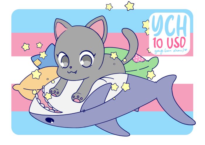 ♡ SB: 8USD ♡ MI: 1USD ♡ AB: 15USD ☆ Any species / Any gender ☆ SB price includes: ♡ Flat colors. ♡ Background flag can be changed to other pride flags / color / gradient. AB price includes: ♡ Full color (examples in the gallery). ♡ Colors of the props can be adjusted. ☆ EXTRAS ♡ +5 to 10USD for clothes or accessories. ♡ +5 to 10USD for a more detailed background. Buyer gets the HQ file in a .zip file so the image doesn't loses quality being compressed. ☆ ToS: https://zagcandraw.carrd.co/