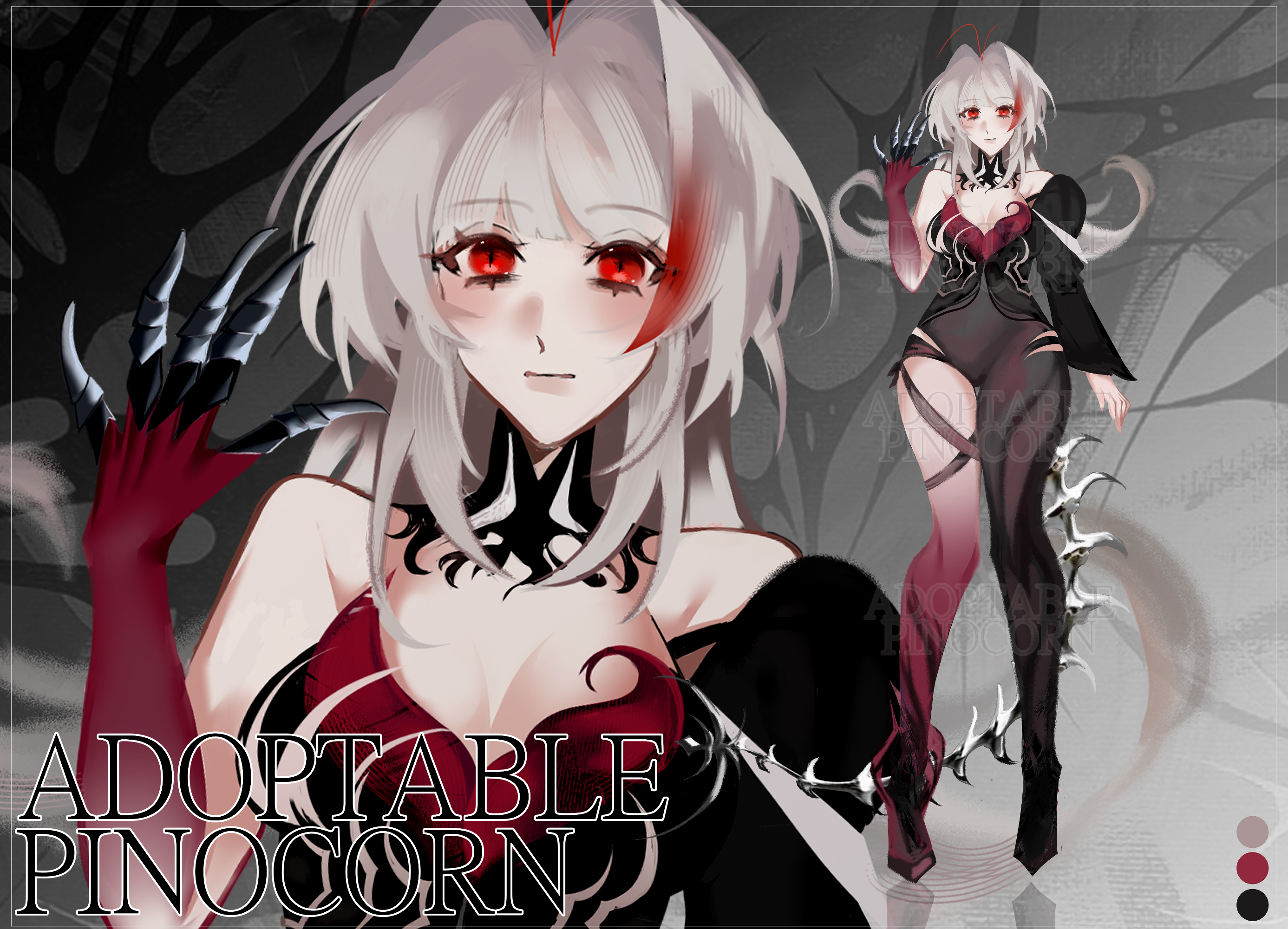 DA - https://www.deviantart.com/pinocorn/art/Adoptable-Character-Auction-1-OPEN-1305795547 SB: 5 $ MIN: 2 $ AB1: 100 $ - Portrait, any little modification in design what you want AB2: 200 $ - Different outfit (on your choice) AB3: 300 $ - Character Sheet (with one outfit) and Commercial rights. [Please bid seriously] Payment in PAYPAL RULES: After buying the character, you can do whatever you want with it, change gender, design, etc and resell but not for more than you bought it for. Winner will receive the full size image, without watermark. No Refunds I can include the sold artworks in my portfolio, and I can also post them or purposes to grow my audience. My social media: https://vgen.co/Pinocorn https://x.com/pinocornosok