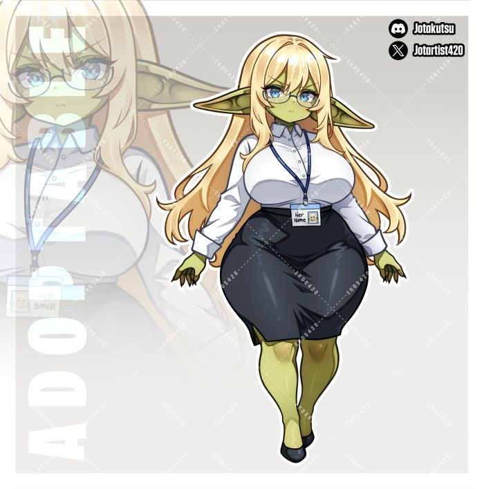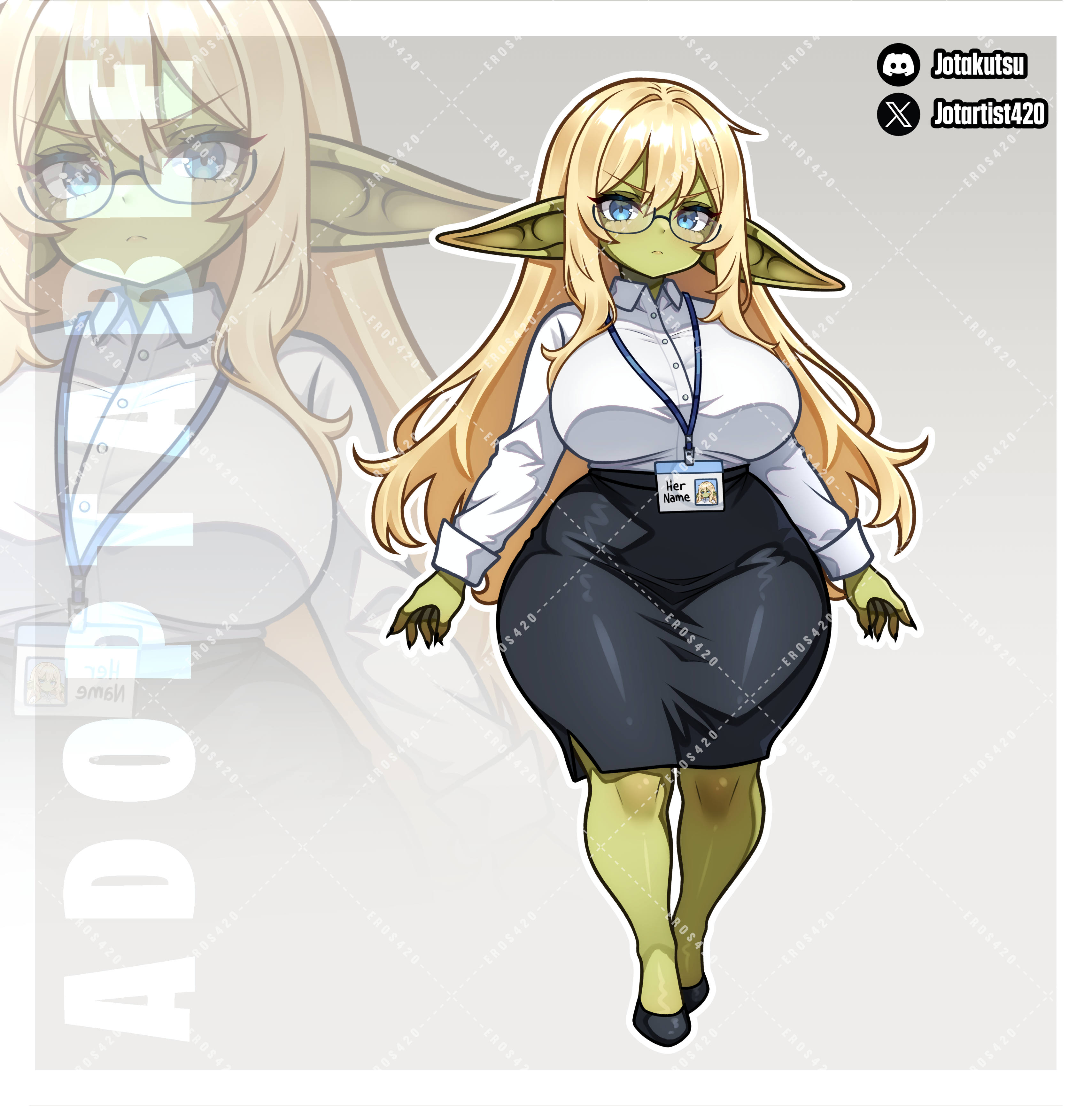 ✨ ADOPTABLE 147 | Office Goblin ▫️ Status: OPEN | 24H Auction | Art & Design by: Eros420 💰 AUCTION INFO ▫️ Start Bid: $45 ▫️ Min Increment: $5 ▫️ Auto-Buy: $250 🛒 AUCTION TIERS ▫️ $75+ above + unlock nude version ▫️ $100+ above + Futa or Pregnant + 1 OPTIONAL EXTRA ▫️ 150+ above + 1 full render custom outfit design + 1 fullbody SFW extra art ▫️AB+ above + Fullbody Back view + 1 fullbody artwork (SFW or NSFW) + 3 expressions — deadline 10 days to 1 month. — Commercial rights and an editable file (PSD/CLIP) are available for $75 or more. — Every $50 after AB is an extra fullbody art. — You can upgrade your bid at any time later! 🔧 OPTIONAL EXTRAS (negotiable) ▫️ Body edits (breast, hips, legs) ▫️ Extra/alternate hairstyles ▫️ Color edits (hair, eyes, skin) ▫️ Accessories (jewelry, props) ▫️ Fantasy features (horns, wings, tail, etc.) ▫️ Tattoos, scars, unique markings 📜 RULES & NOTES ▫️ Payment must be completed within 24h of winning. ▫️You can upgrade your BID later. ▫️ Payment method: PayPal, USDT or Lavatop. ▫️ Payment plan If the bid is over $50 (e.g. 2 installments over 14 days). ▫️ Deadline 10 days to 1 month. ▫️ Holds only for AB. ▫️ Winner gets a hi-res, watermark-free PNG with transparent background. ▫️ Feel free to create a name, lore, or story for your new OC! ▫️ Questions? Just drop a comment or contact me directly on Discord. 📌 CROSSPOSTED ON ▫️ FurAffinity: www.furaffinity.net/view/64538136/ ▫️ DeviantArt: https://www.deviantart.com/eros4veinte/art/1316975418 🚨 STAY SAFE All auction communication is done through the CRM or DISCORD! Don’t fall for impersonators. ⭐OFFICIAL CHANNELS ▫️ Facebook: facebook.com/eros4veinte ▫️ X / Twitter: x.com/Jotartist420 ▫️ Discord: jotakutsu