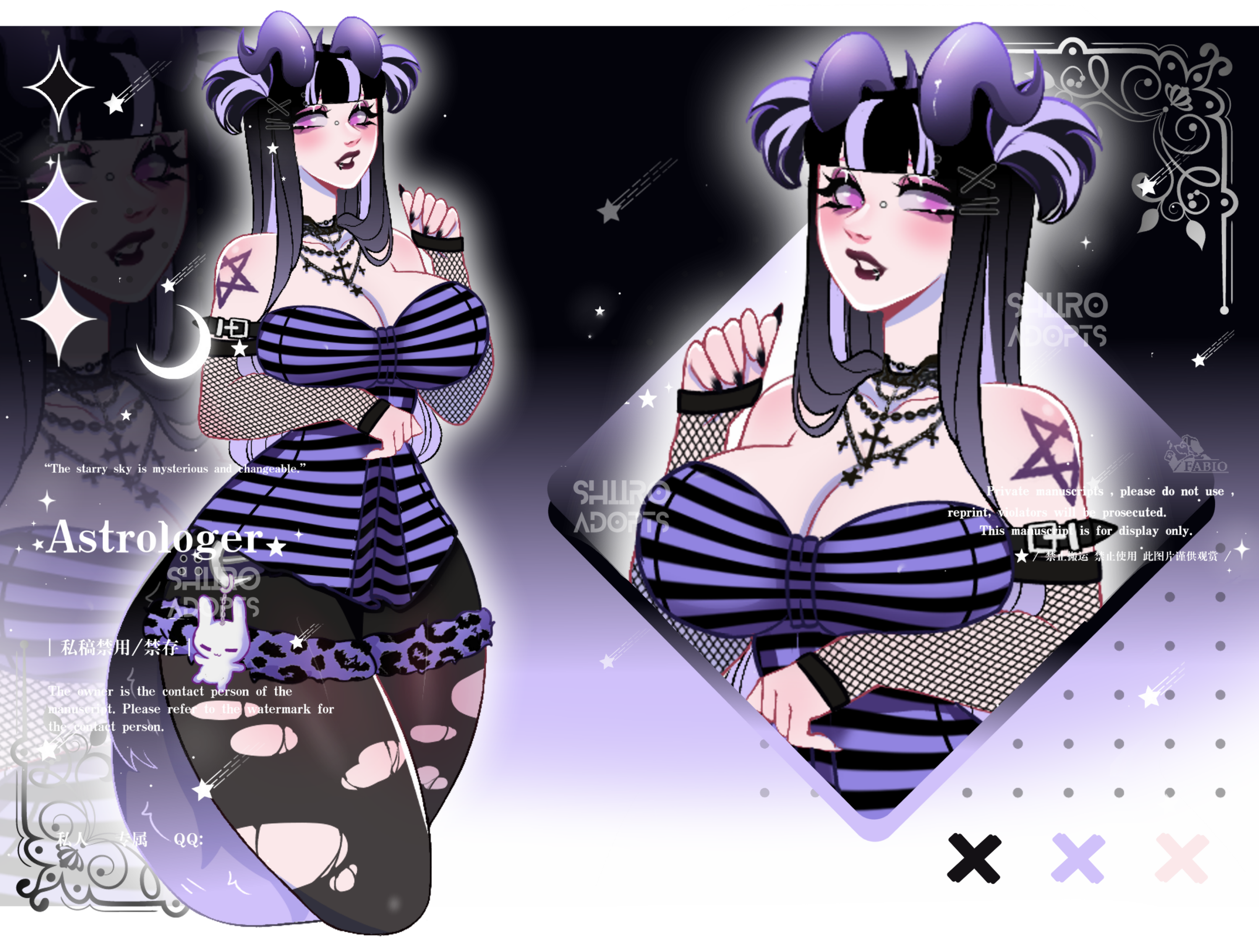 [OPEN GOTH PURPLE ADOPTABLE OC] ✦SB: 15 USD ✦MI: 3 USD ✦AB: 55 USD (Commercial Used + NSFW vrs) ⟡CLAIM WITH HER TWIN FOR 100$⟡ Check here: https://www.deviantart.com/zhiyori/art/OPEN-GOTH-TWINS-ADOPTABLE-OC-1317081766 RULES: ❖Payment via PayPal ❖No refunds. ❖No deleting of bid. ❖Full payment needs to be sent within 24 hours after the confirmation. ❖No Sniping (bids in the last 10mins extends the auction) ✦You'll receive PNG file without watermark + Transparent PNG file ⋆౨ৎ˚⟡˖ ࣪ Design by me ( ◜‿◝ )♡ base by: FabioKings Crossposted: https://www.facebook.com/share/p/1731YYX4GM/ https://www.deviantart.com/zhiyori/art/OPEN-GOTH-TWINS-ADOPTABLE-OC-1317081766