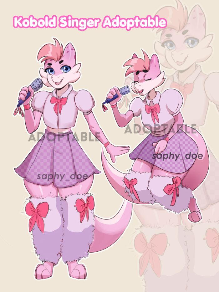 Kobold Singer - Adoptable ๐ MY LOOT: https://loot.commishes.com/user/profile/saphy_doe SB: $5 MI: $1 โจ Payment only via Paypal. ๐ After full payment, you will receive: PNG image watermark/signature free, with a transparent background. I will send you the PNG file via email. โจ Rules - Reply and payment must be done within 24 hours. - No refunds. - Only serious bids. - You can do whatever you want with the design, just credit me as the designer. My socials media: ๐ Tiktok: saphy_doe FA: https://www.furaffinity.net/user/saphydoe Bluesky: https://bsky.app/profile/saphydoe.bsky.social X: @saphy_doe Reddit: https://www.reddit.com/user/saphy_doe/ Art and design by me