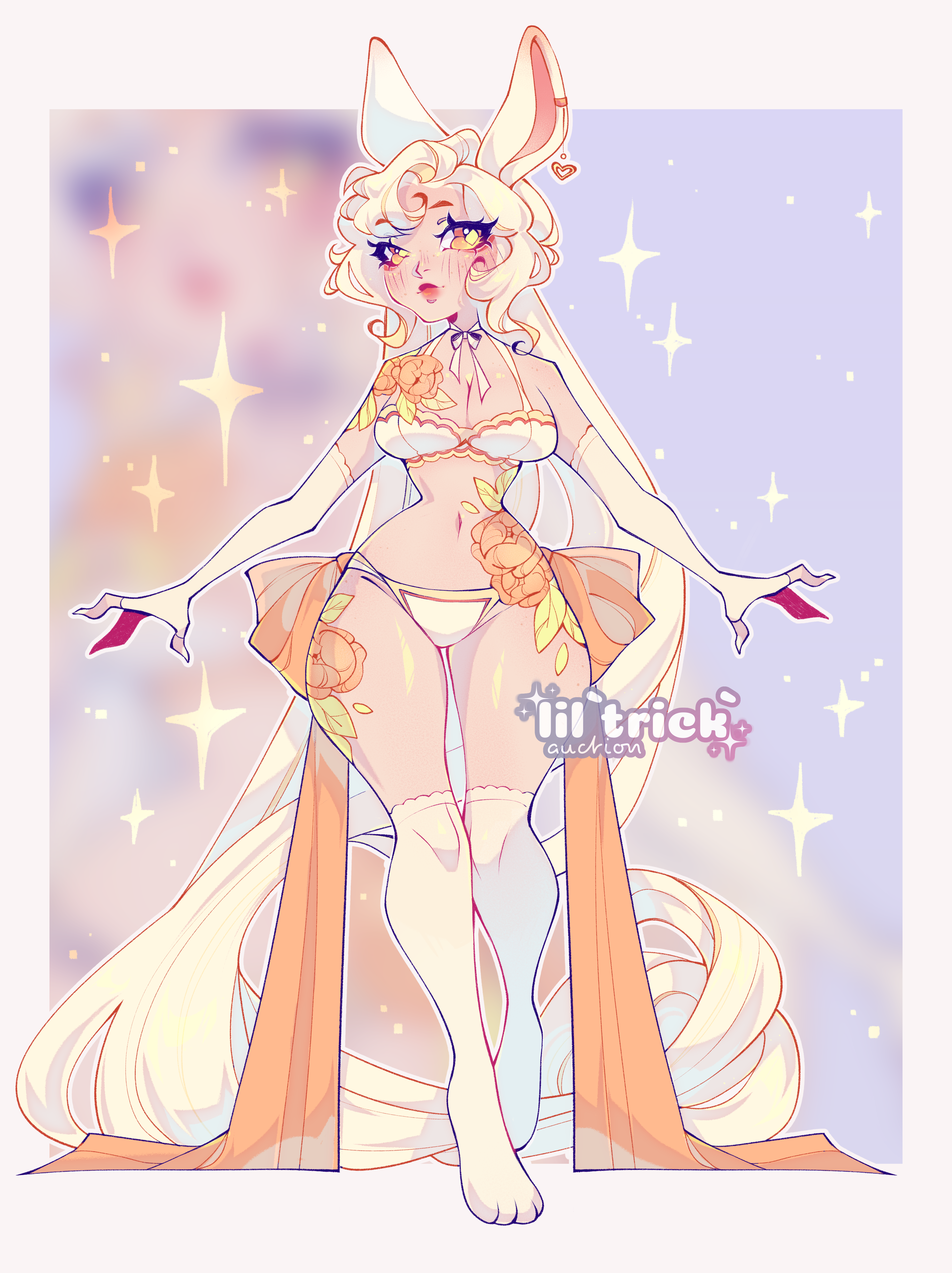 ♥ MI: 2$ ♥ AB: 120$ Bid Goals: 40$+ nude version. 60$+ futa version or one bonus of your choice. 120$ full reference sheet (nude version, back view, color palette, portrait, second outfit or close-up). ♥ Unlockable Bonuses (for the extra payment): +15$ back view +15$ another outfit +15$ portrait ♥ After Purchase: • High-quality digital file. • Rights for personal and commercial use included. ♥ Payment: Payment is accepted via PayPal, and must be completed within 2 days after the auction ends. ♥ Please Note: All sales are final, and returns or exchanges are not accepted. The character rights transfer only upon full payment. ♥♥♥ Feel free to reach out with any questions! ♥♥♥ my X: x.com/liltrick0side