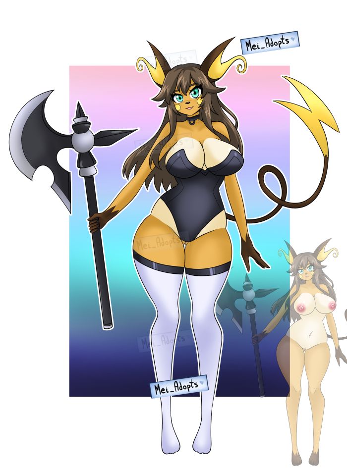 ๐ธ SB: 15 USD ๐ธ Min: 5 USD ๐ธ AB: 90 USD โSB: You'll get the version with clothes โ $50+ You'll also get the NSFW ver. โ $65+ You'll also get an extra adoptable that I have available from here: https://www.furaffinity.net/gallery/meiadopts/folder/1293832/OPEN-Adoptables - Paypal only (I'll send you an invoice). You have max 48h to make the payment. I can hold 2-3 days if you need it and tell me. - No refunds. Only serious bids. - If you don't reply in less than 48h, I'll delete your bid and go into the next bidder/reauction the adopt. - After payment is sent, I will send you the pictures through email. - You'll get personal rights. - You'll get the original file + file with no background. - You can't use the adopt for AI profit usage. - Only resell for same price or less (unless it has extra art). - Credit me for the design if possible. Socials: - Toyhouse: https://toyhou.se/M_Adopts/characters - FA: https://www.furaffinity.net/user/meiadopts - Twitter: https://x.com/Mei_Adopts (If you win the auction and have a toyhouse, let me know and I'll also transfer the character to yours)