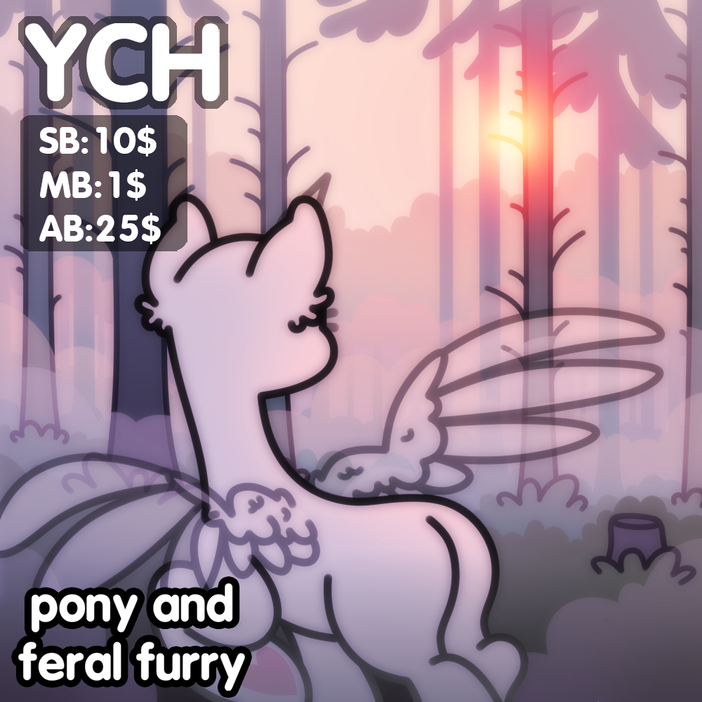 Simple Pony Foggy mood YCH 🎠 SB: 10$ 🎠 MB: 1$ 🎠 AB: 25$ AutoBuy: ● you can add any SFW text to the drawing ● you can add some details to the drawing ● you DON'T NEED to pay +10$ for difficult character Loot: https://loot.commishes.com/user/profile/nikuri/ ✿ *+:。.。 (๑ᵔс ᵔ๑) 。.。:+* ✿ 🦄 ALL races of pony and feral furry are accepted 🦄 Deadline is 2 weeks 🦄 Payment ONLY via Boosty (by CARD) in 48 hours. Prepayment 100% 🦄 NO refunds 🦄 When the auction ends, I send you message with general info for payment and after that before payment you need to send me your characters references for the drawing (and only after my respond you send the funds) 🦄 If the auction winner does not respond within 24 hours, then your place goes to the owner of the previous bid 🦄 Simple edits free, but each subsequent difficult edit +5$ 🦄 You need to pay +10$ for difficult character 💜 Custom commissions are open 💜 Connection with me: 🐴 Telegram: (nikurya) http://t.me/nikurya 🐴 Discord: (nikurya) https://discordapp.com/users/804642042520797190 🐴 CRM: https://crm.commishes.com/commission/nikuri/ ✿ *+:。.。 (๑ᵔс ᵔ๑) 。.。:+* ✿ CROSSPOSTING IS PRESENT IN: 🍬 Boosty: https://boosty.to/nikuri/about 🍬 DeviantArt: https://www.deviantart.com/nikuriii 🍬 FurAffinity: https://www.furaffinity.net/user/nikuri