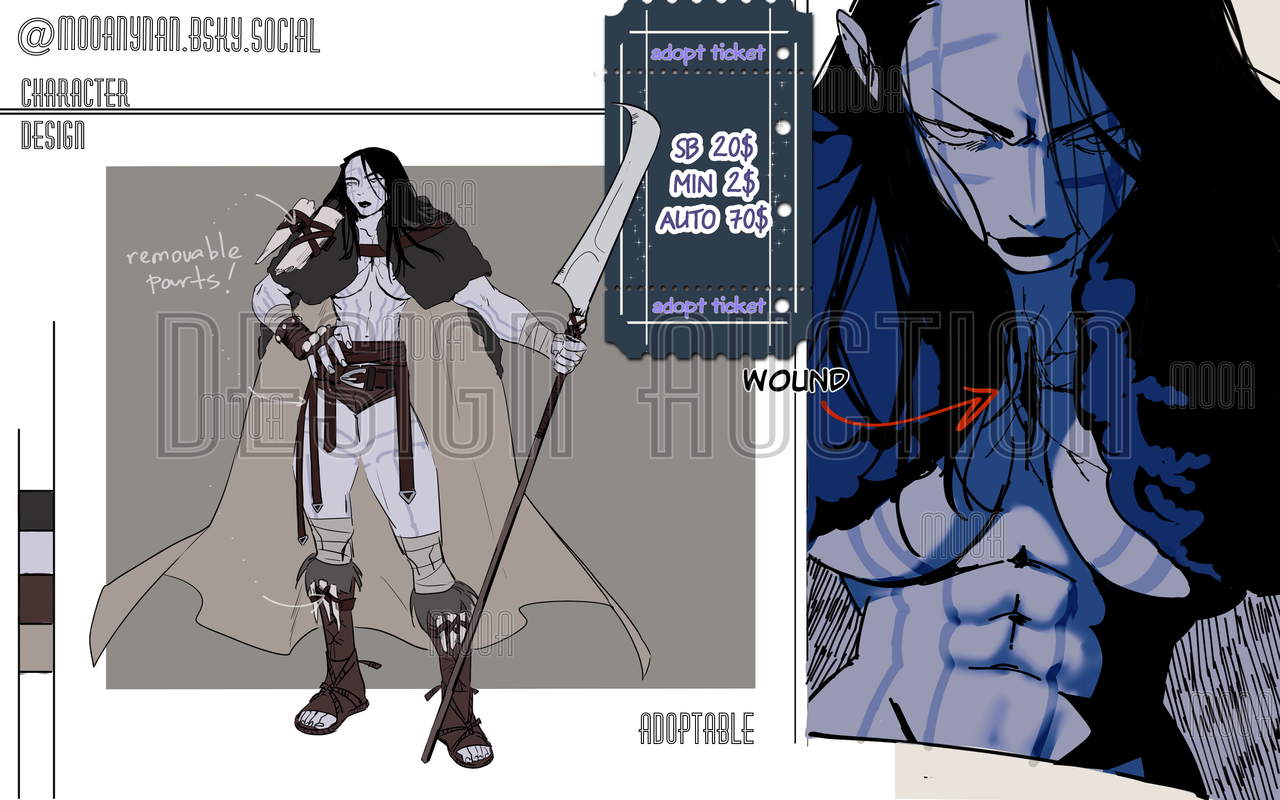 ☆No rules for character!! ☆ but I will be glad if you mention me as the author! - payment via BOOSTY, I send all the necessary instructions c: start-20$ Mb-2$ Auto- 70$ Separated line and color for additional fee 5$ For other: basic file PNG/JPEG without watermarks, but you still will be able customize/ remove background/ elements watch first all new WIP's for future adopt's here: https://bsky.app/profile/mooanynan.bsky.social https://boosty.to/mooanyan If you have any questions, don't hesitate to write!