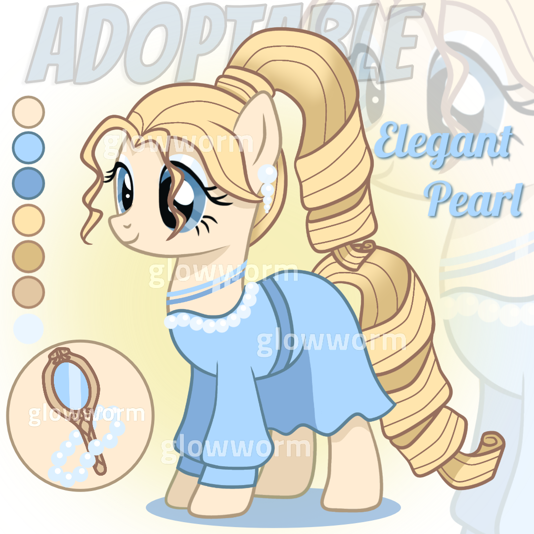 - SB: 17$ - MIN: 1$ - AB: - RULES: - full prepayment - You will receive full rights to the character, you can change the design, story, facts, etc. – You can resell the - character, but the price cannot be higher than the one you bought it for. - Please - make sure you can pay within 24 h. - No refunds. • Payment via PayPal only • • After purchase You: - Full ownership of the character; - Receive PNG files without watermarks (White, Transparent background); - Main Character View: A full-body view with clothing and accessories; - Detailed separate view of the Cutie Mark; • Also published on DeviantArt - DeviantArt link: https://www.deviantart.com/gloww0orm/art/OPEN-Pony-Adoption-Auction-Elegant-Pearl-1318578968 Contact me: [email protected]