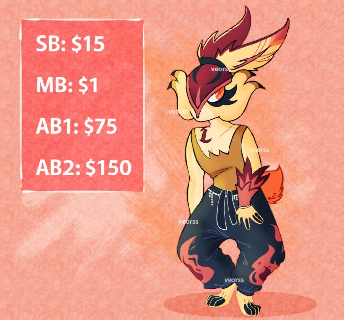 ๐ฅSB: $15 ๐ฅMB: $1 ๐ฅAB1: $75 ๐ฅAB2: $150 From $30 bid you will get SFW naked version (if you need it) From $35 bid I can change any details (if you need it) From $50 bid you will get NSFW naked version (if you need it) From AB1 you will get art with them From AB2 you will get refsheet with them (we'll discuss all of the above!) โโโโโโโโโโโโโโโโโ Rules: - Payment through Boosty/Hipolink - Payment within 24 hours, but I can give you a little more time - The auction will end after 7 days or earlier - Winner gets PNG/JPG file without watermarks - No refunds - Holds are possible! Crossposted with FurAffinity https://www.furaffinity.net/view/64299067/ โโโโโโโโโโโโโโโโโ